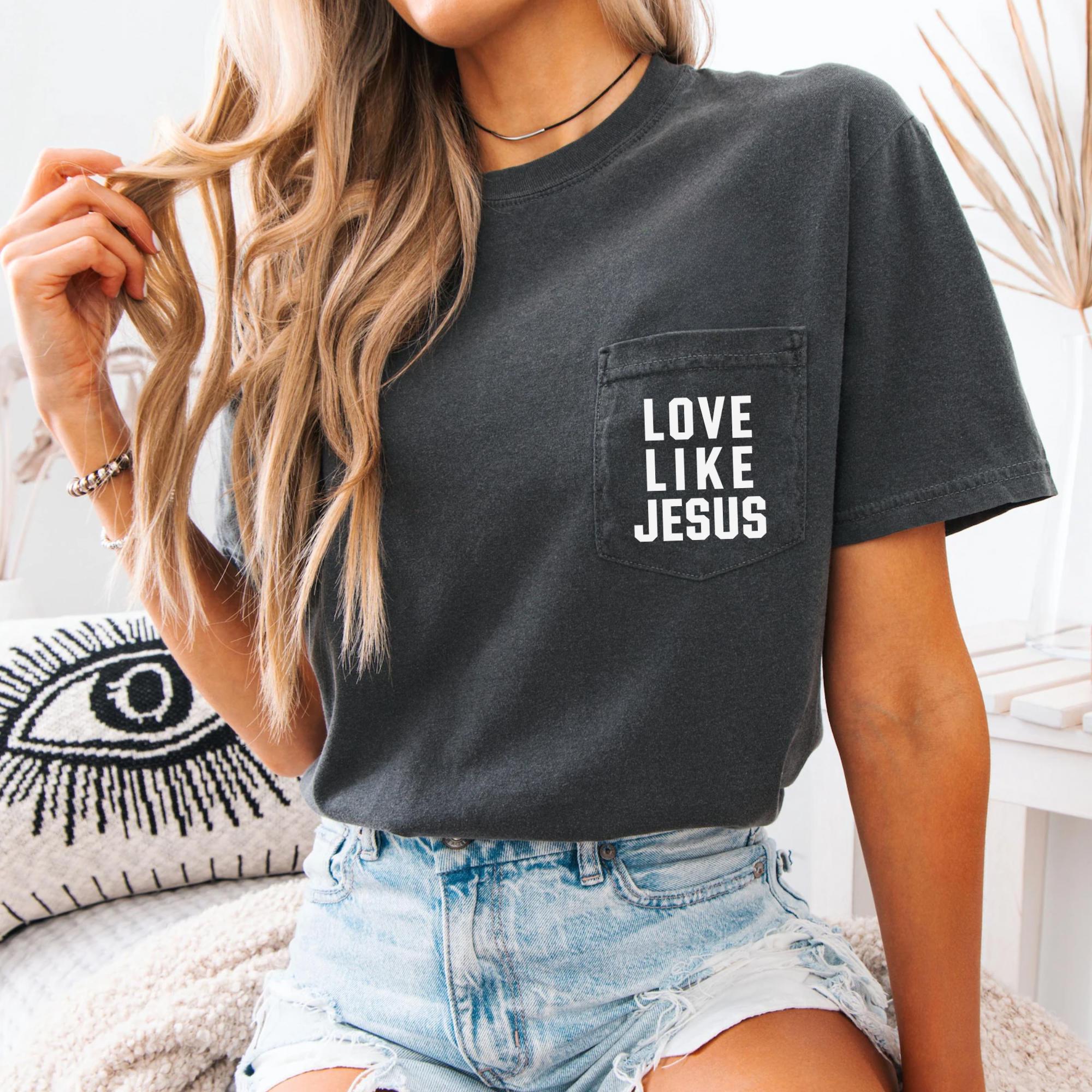 Love Like Jesus Pocket Tee by Comfort Colors, Christian Graphic Shirt with Front Pocket Print, Faith-Based Minimalist T-Shirt, Summer Casual Outfit, Gift for Her