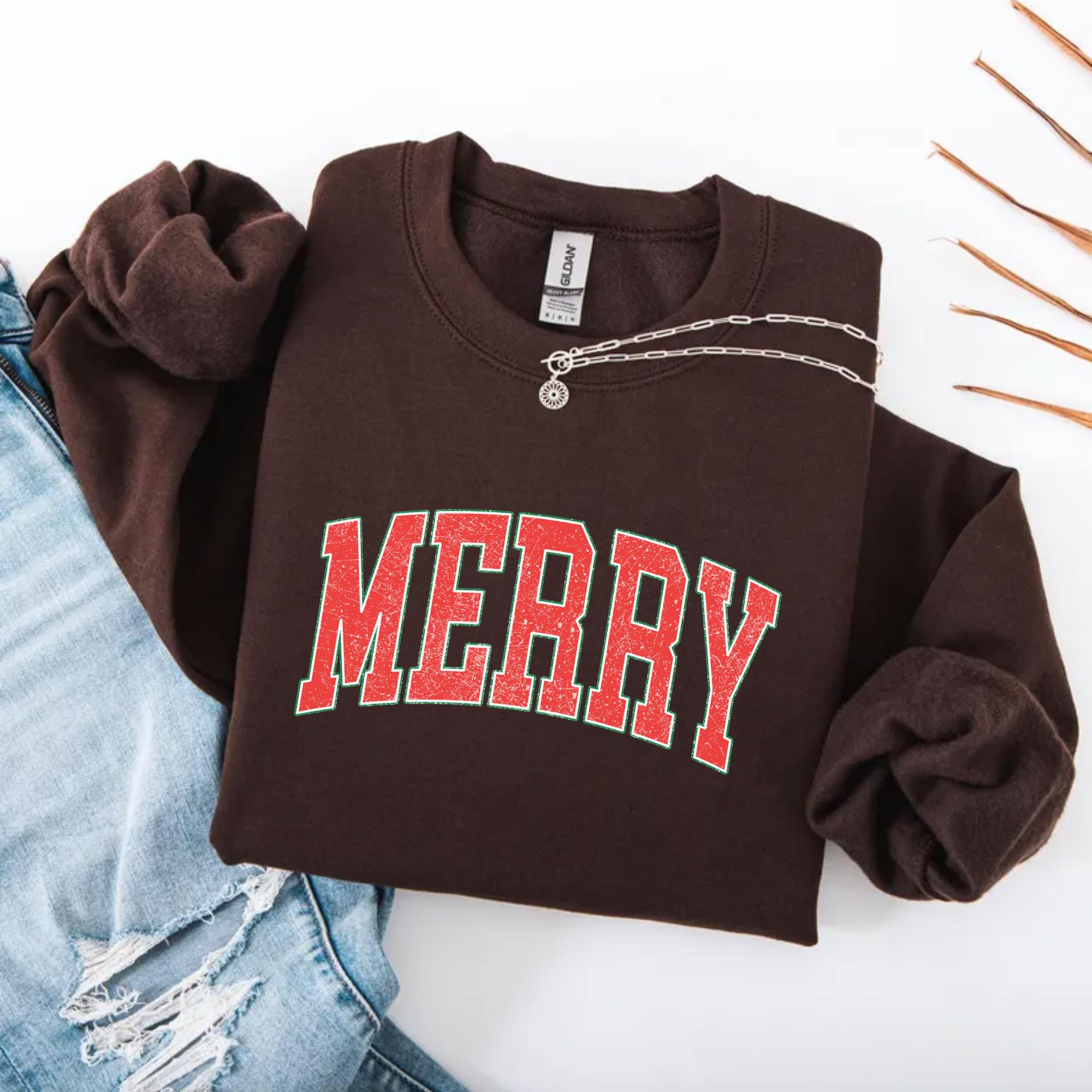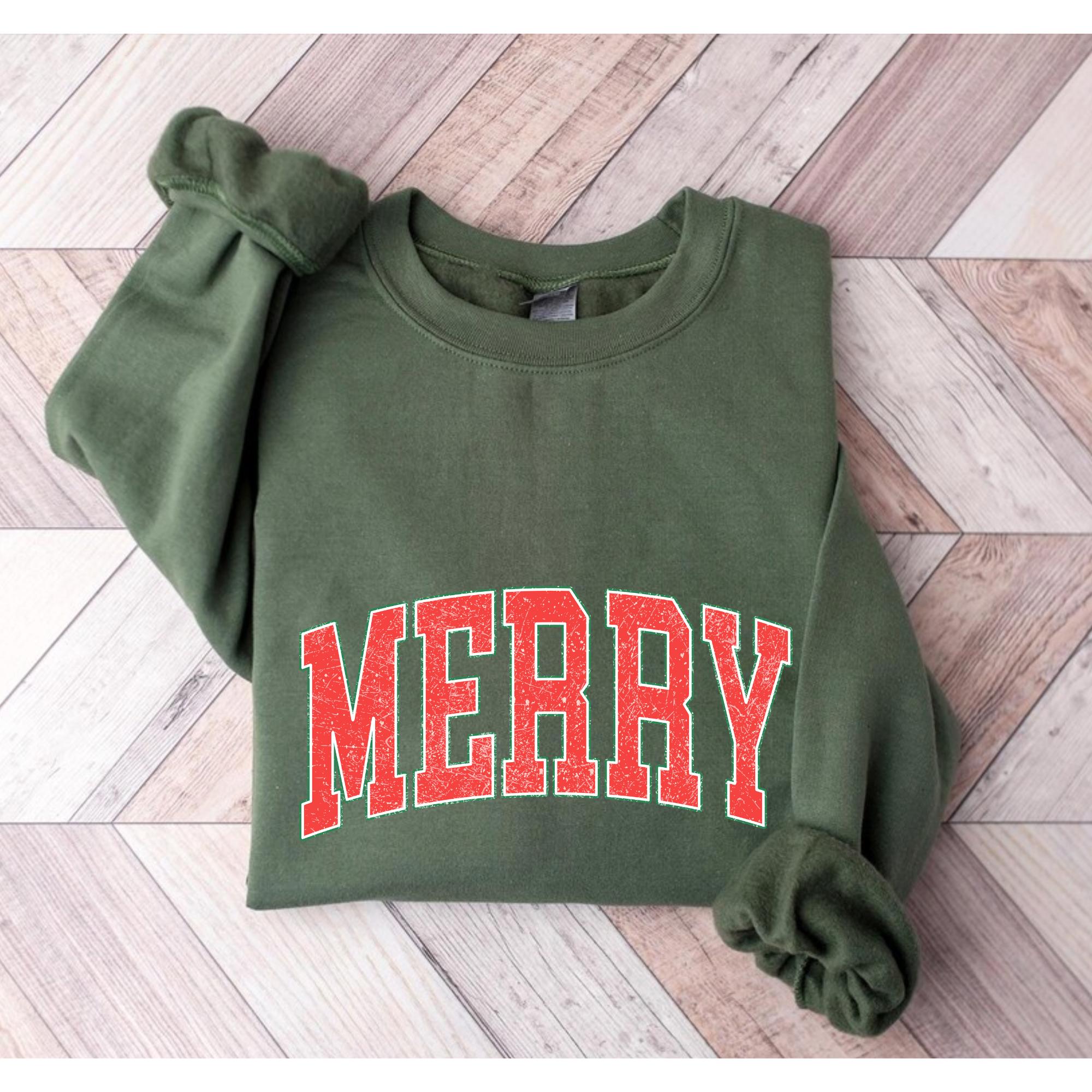 MERRY Christmas Sweatshirt | Cozy Holiday Crewneck | Red Graphic Letter Pullover | Festive Winter Outfit Gift for Her