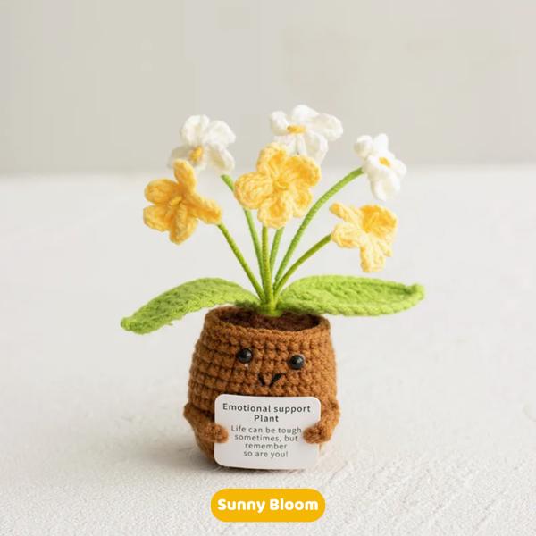Crochet Flower Hug Pot – Emotional Support Potted Plant with Positive Message, Gift for Mom, Dad, or Teacher, Amigurumi Home Decor