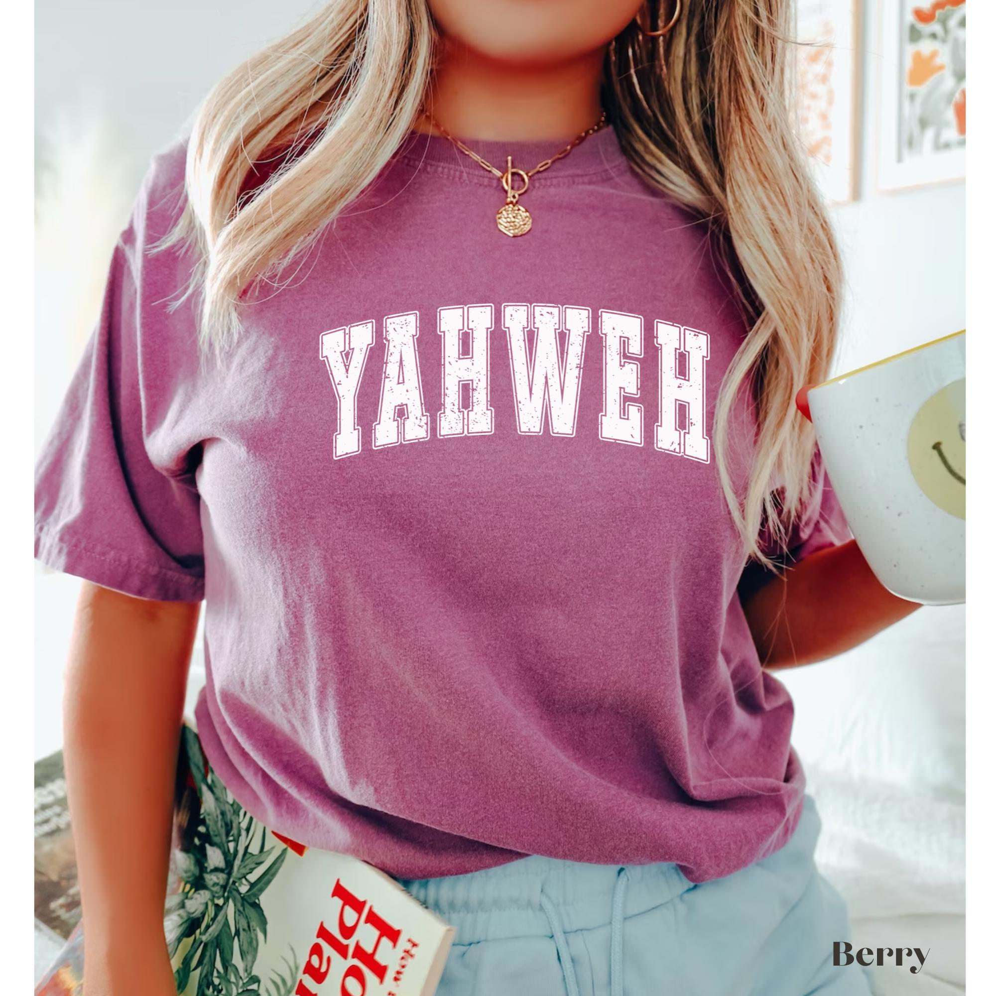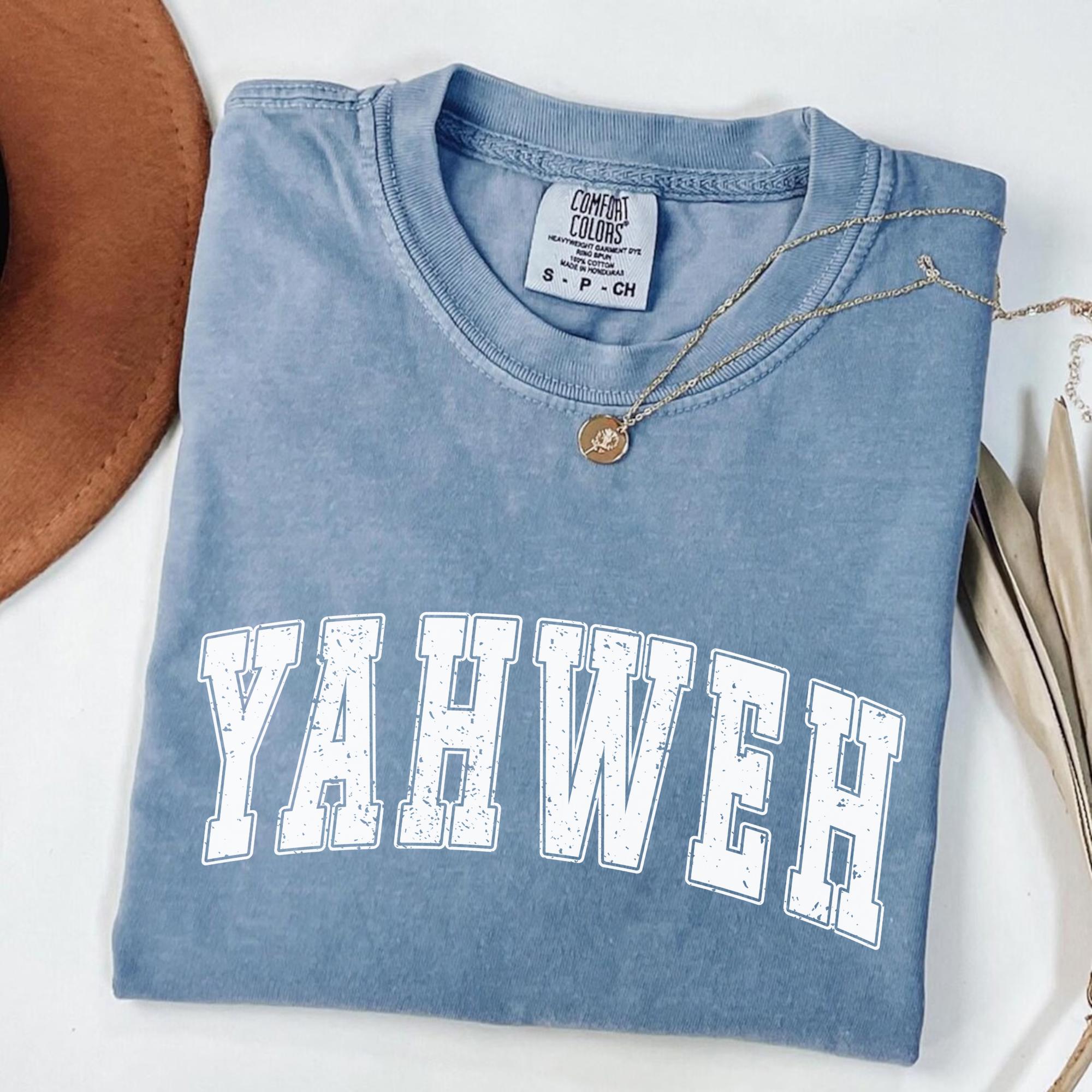 YAHWEH Graphic T-Shirt by Comfort Colors, Bold Christian Tee for Women, Distressed Faith Shirt, Church Outfit, Faith-Based T-Shirt, Gift for Her
