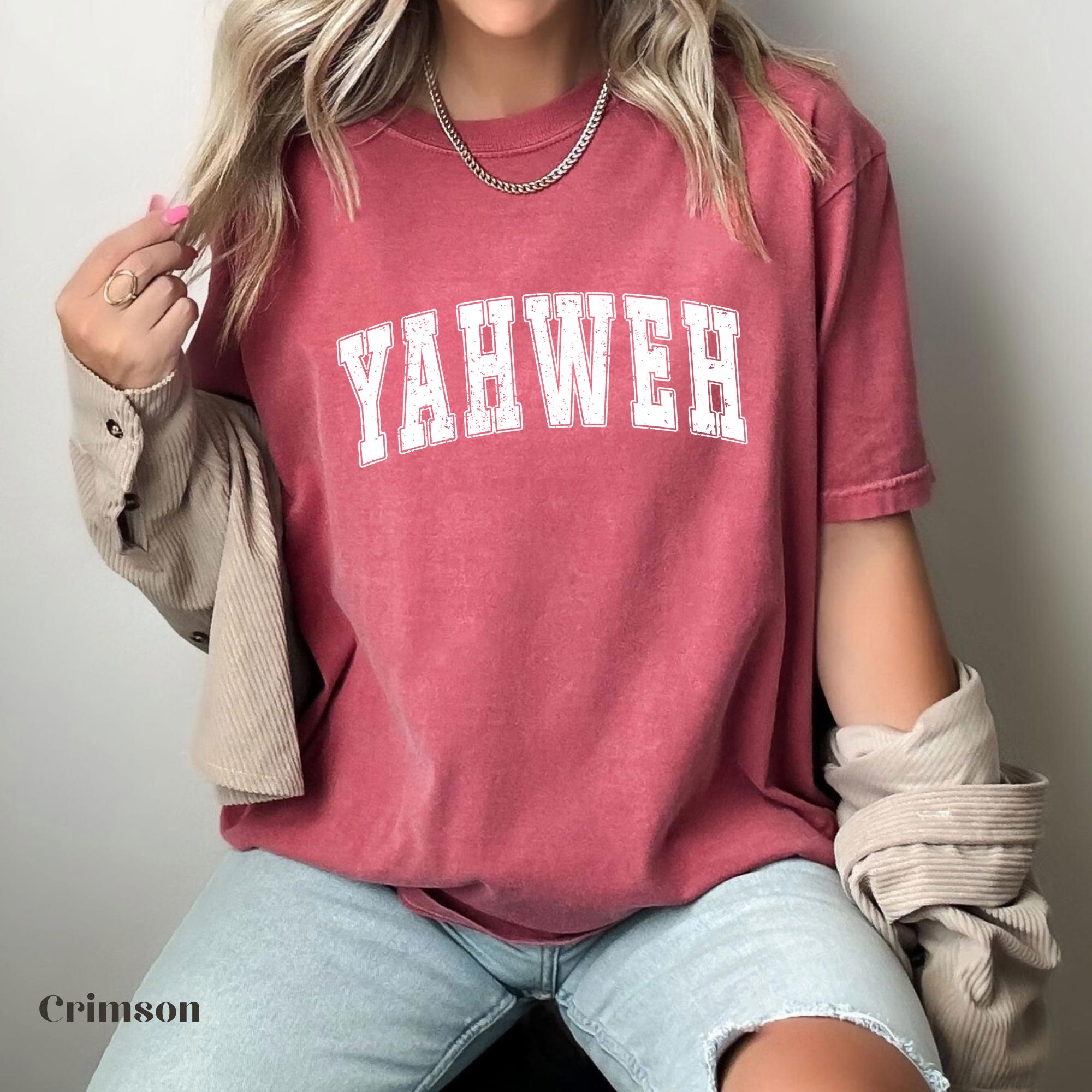 Make a bold statement of faith with this YAHWEH graphic tee. Printed on a premium Comfort Colors unisex shirt, this design features a distressed collegiate-style font for a vintage yet timeless feel. Perfect for everyday wear, Bible study groups, or as a thoughtful Christian gift.