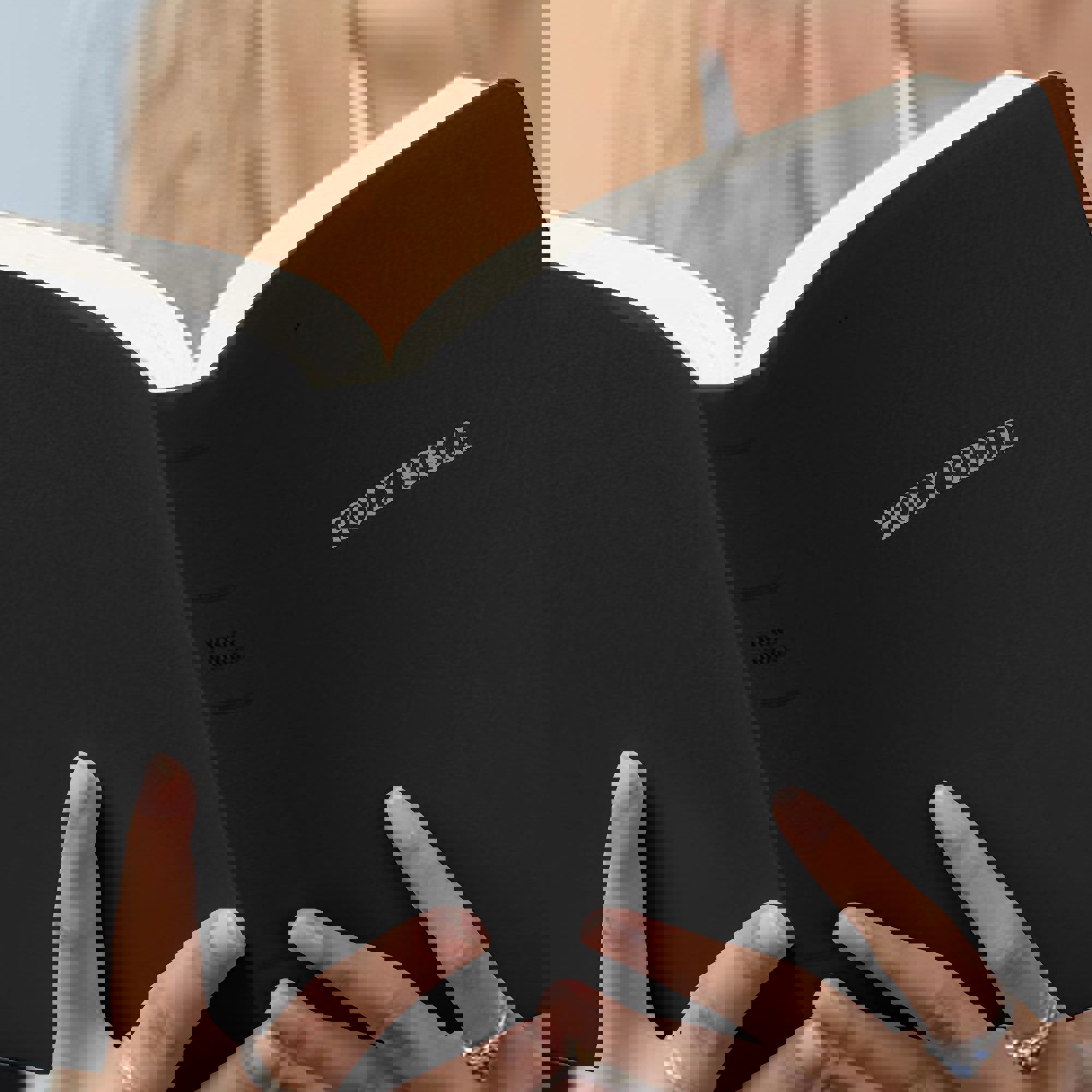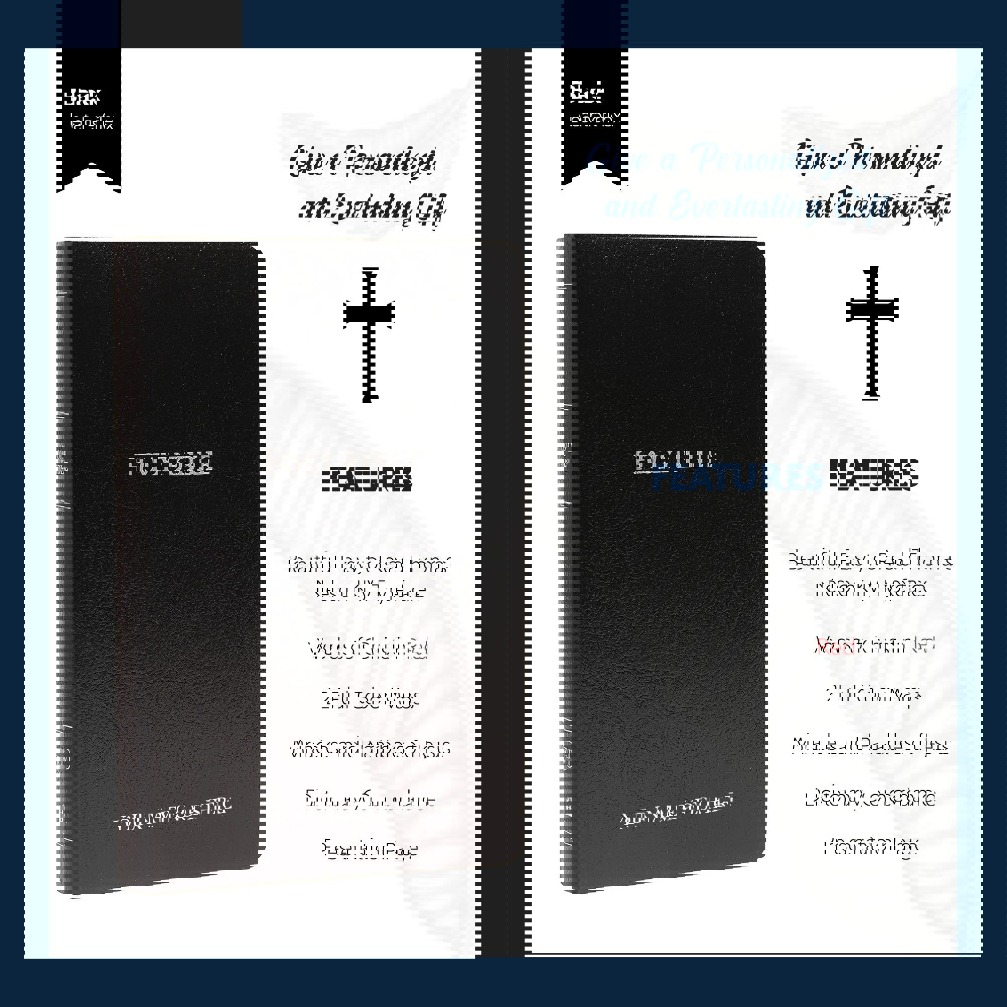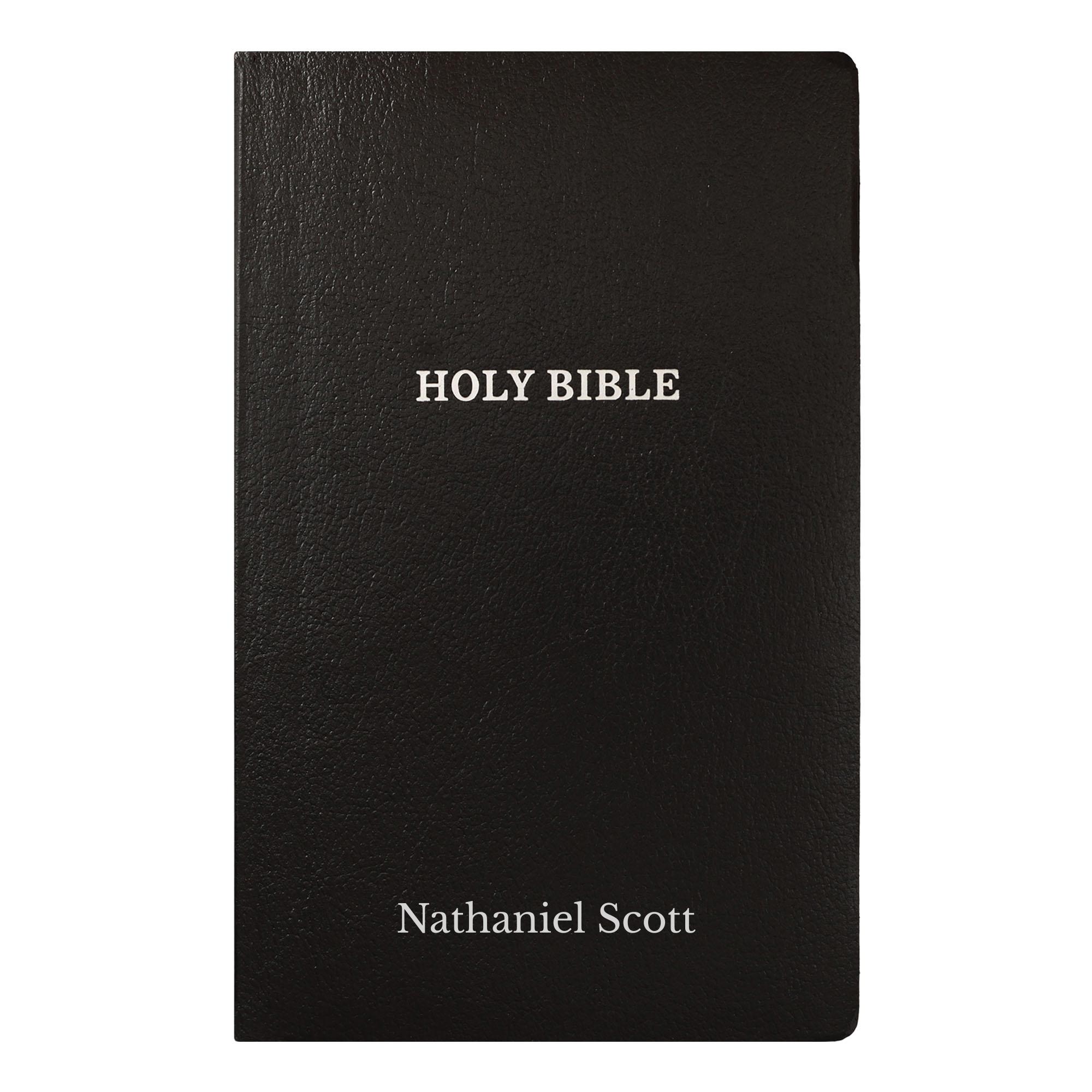 You can personalize this Bible with a name only, beautifully imprinted in silver on the black faux leather cover.