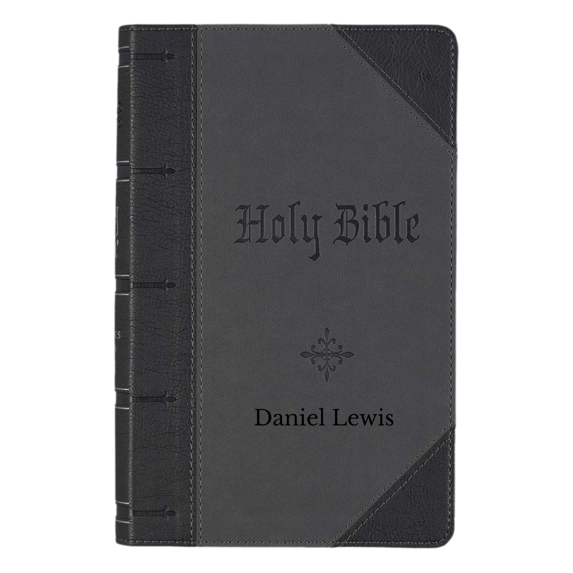 This giant-print two-tone KJV Bible is a thoughtful and meaningful gift, perfect for personal devotion, church, or religious celebrations. You can personalize it with a name only, or leave it without any personalization.