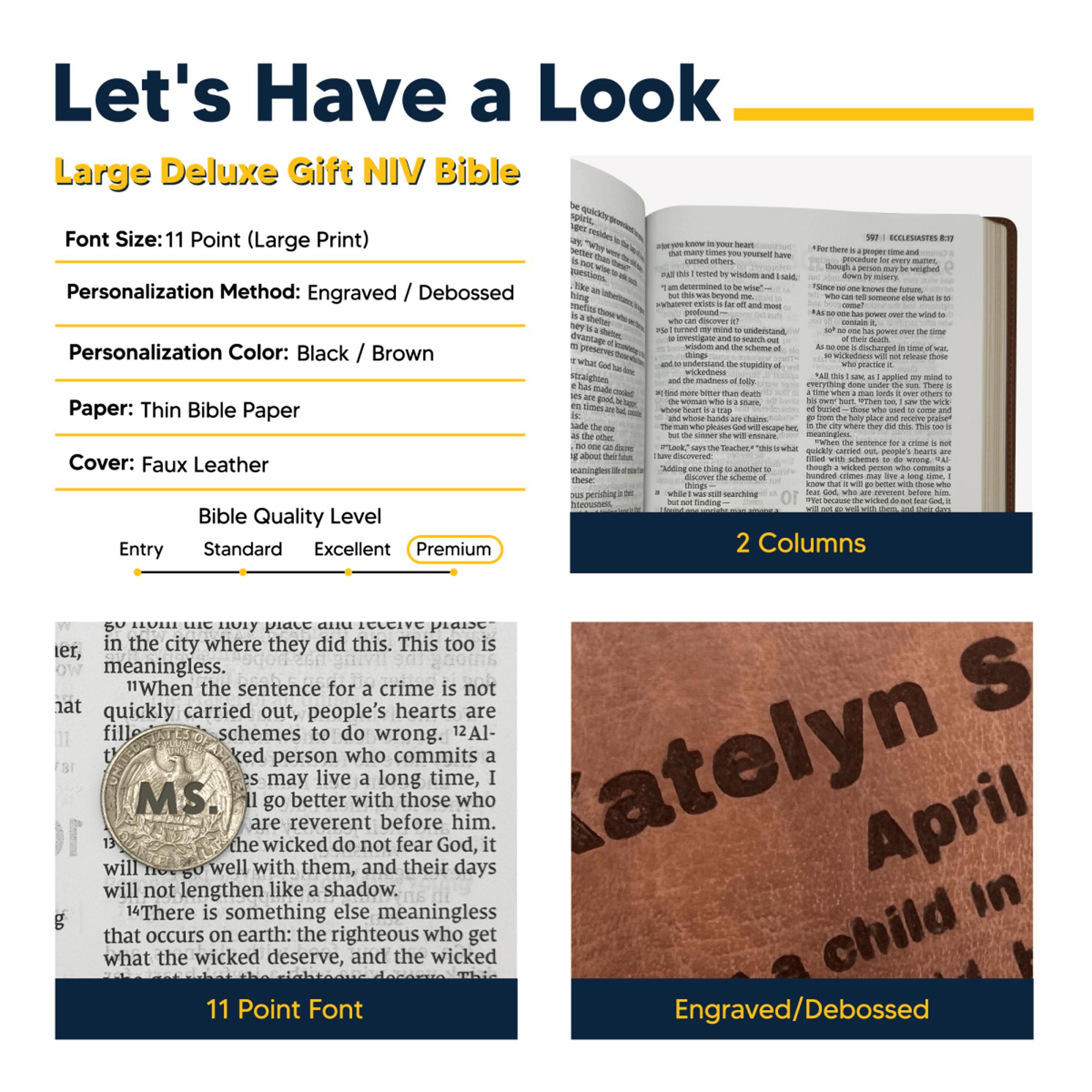 Custom NIV Brown Standard Size Thinline Personalized Holy Bible Large Print
