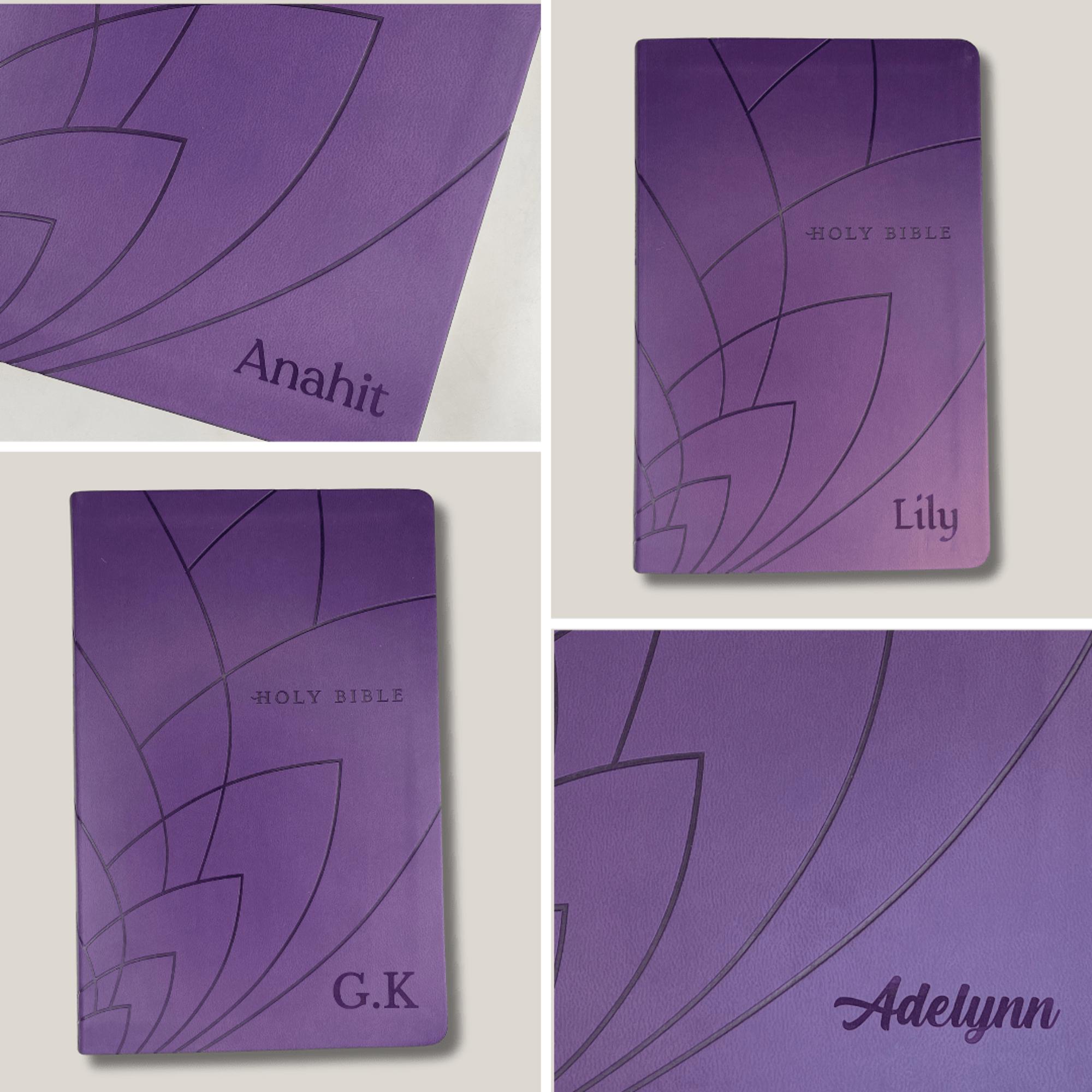 Custom NLT Dark Purple Standard Size Personalized Holy Bible Small Print | Petal