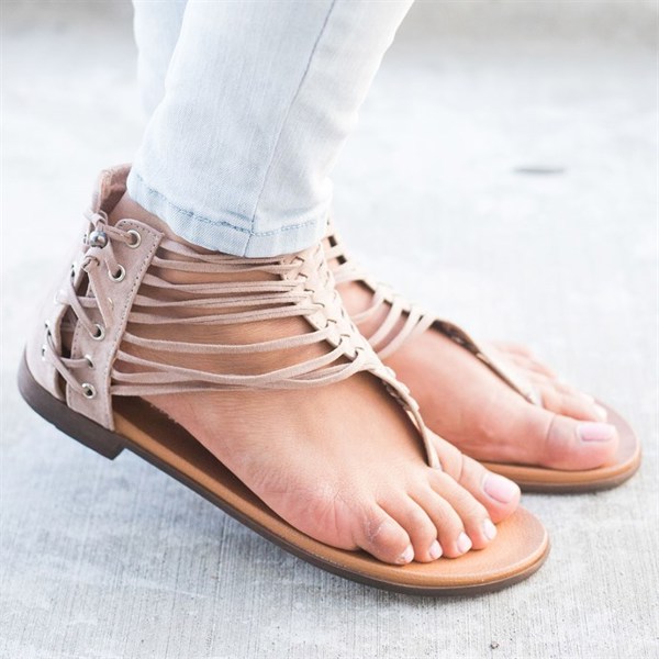 I like that the foot bed of this sandal has a bit of cushion to it. The strap between the toes pulls a little on one foot, but hoping that will go away as they break in.