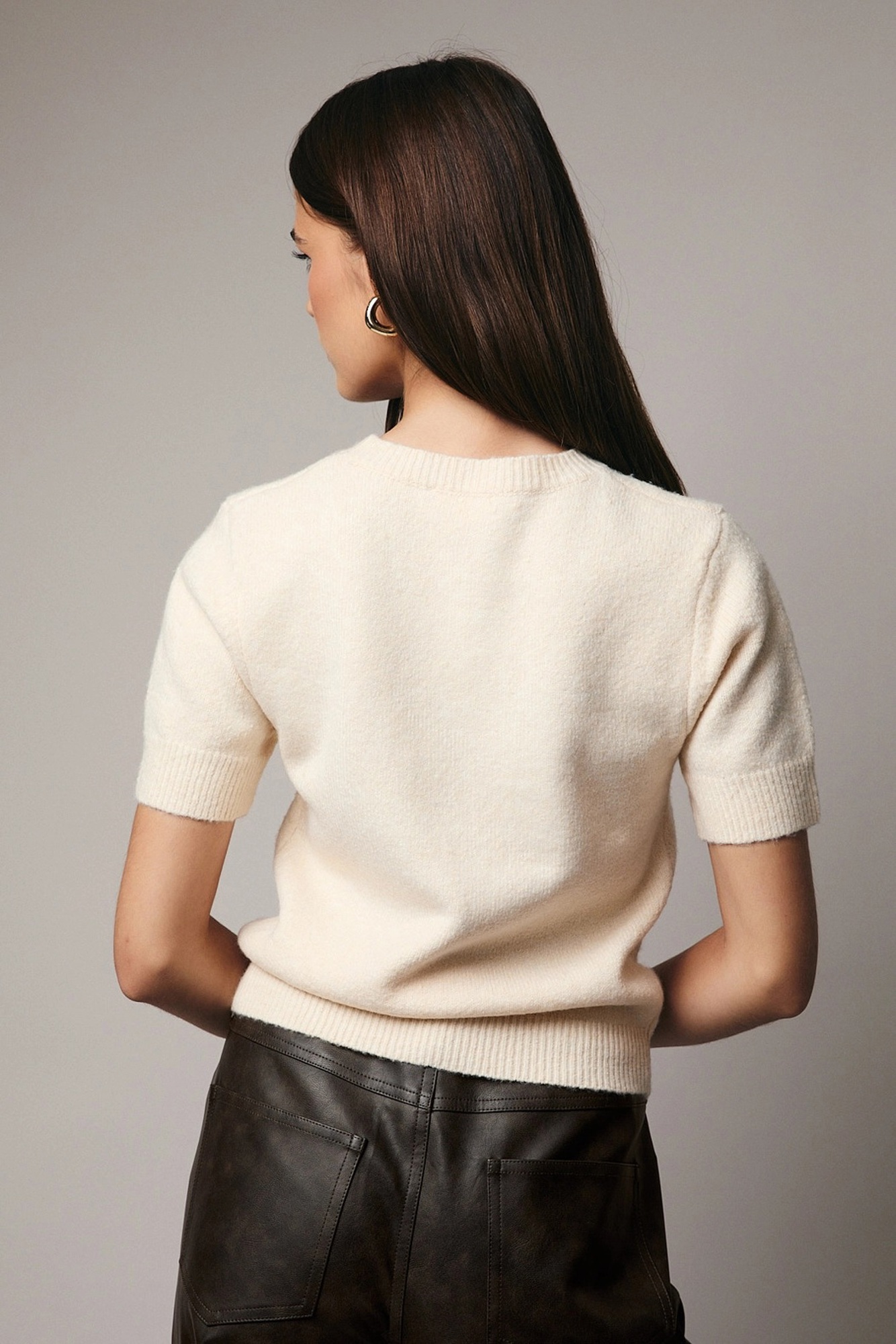 Raise a glass to cozy-chic style with our Cheers Round Neck Rhinestone Sweater. Crafted from a soft, luxurious knit, this short-sleeve sweater adds just the right amount of sparkle with its rhinestone “cheers!” detail across the front. The relaxed yet feminine fit makes it perfect for everything from holiday gatherings to casual nights out.