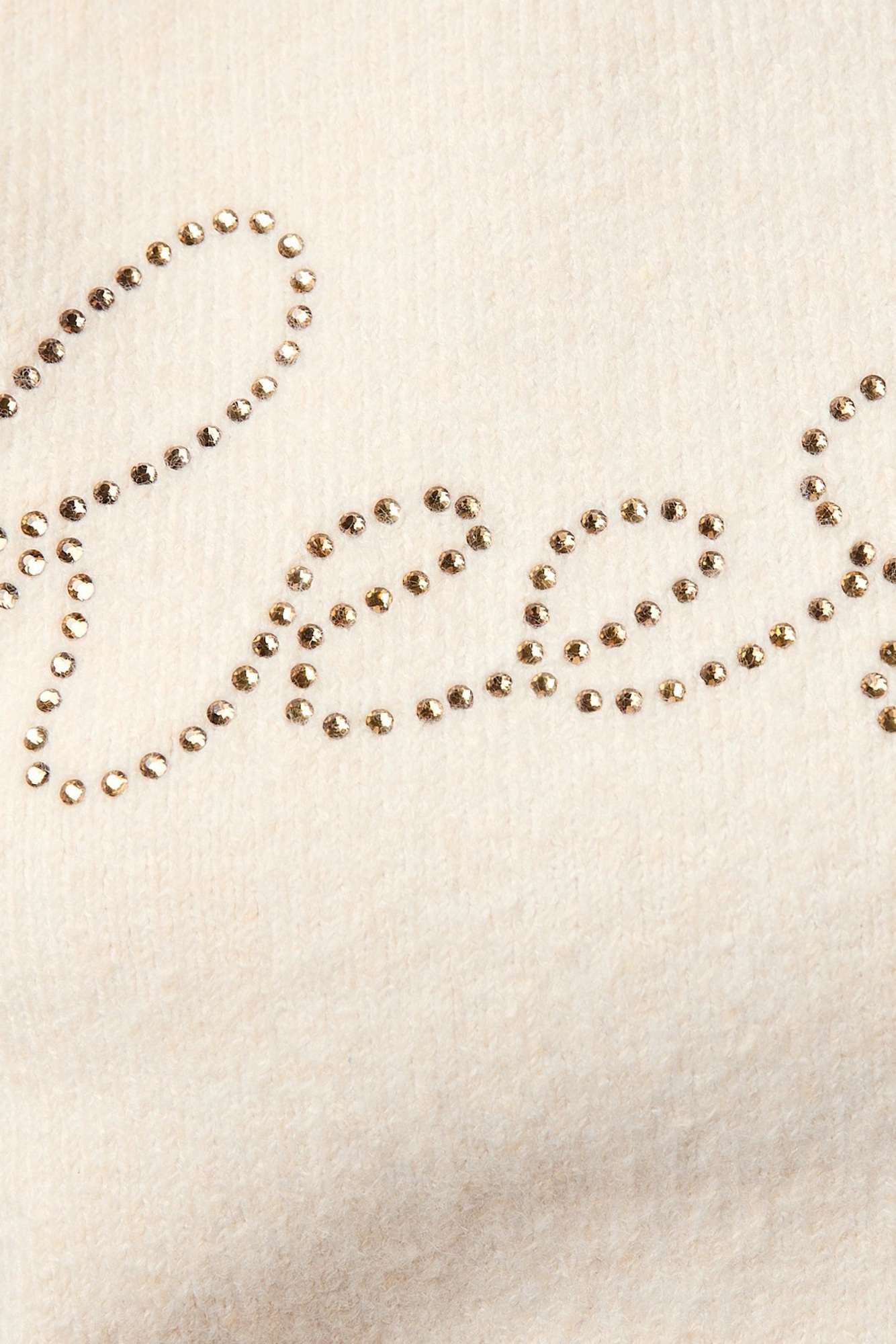 Cheers Round Neck Rhinestone Sweater | Women's Beige Top | Holiday Trendy Winter Shirt | Festive Style