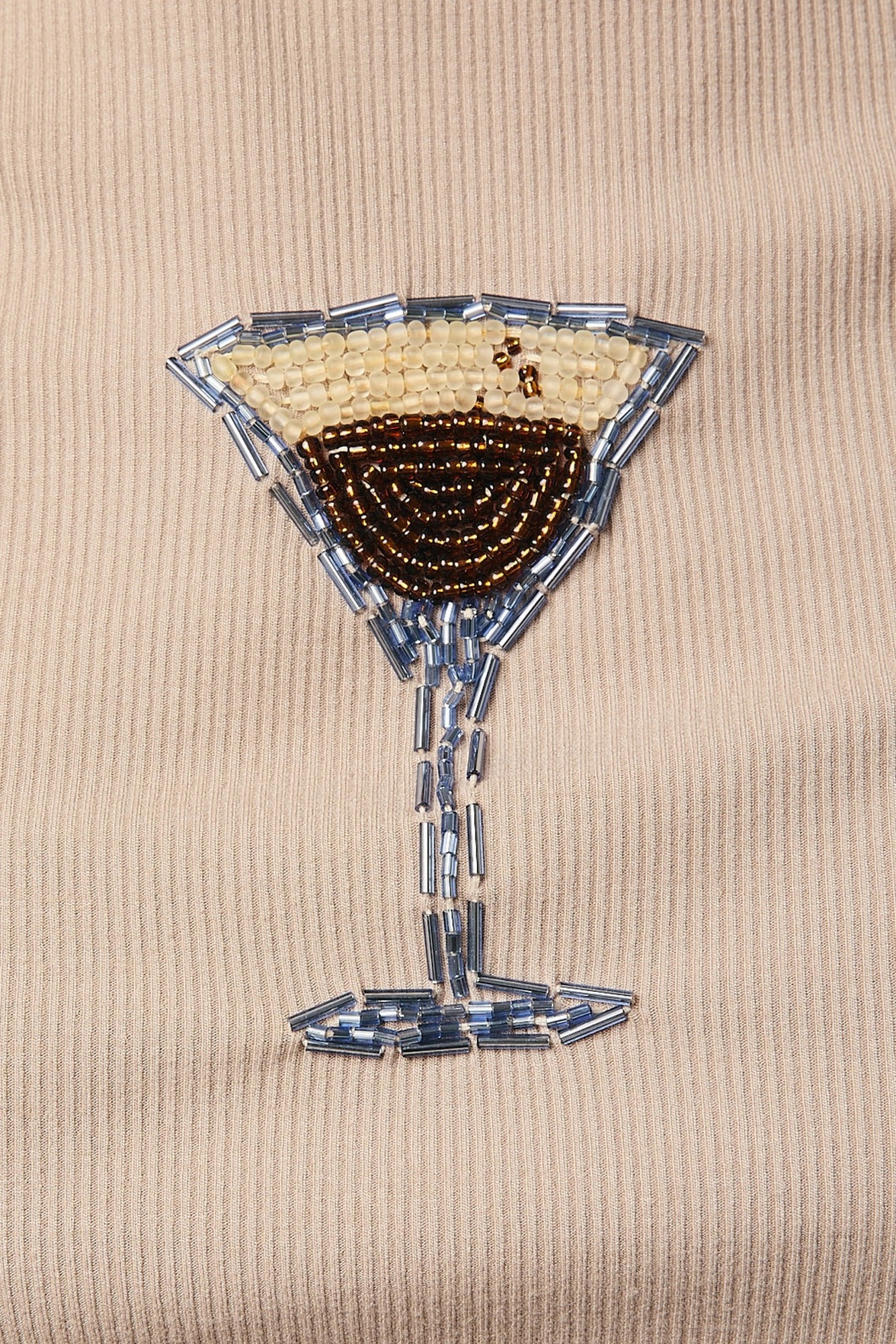 Sip, sparkle, and shine in this Espresso Martini Round Neck Rib Top... a playful twist on a classic neutral! Crafted from soft ribbed fabric with the perfect amount of stretch, this fitted short-sleeve top features a hand-beaded martini glass design that adds a touch of glam to your everyday look.