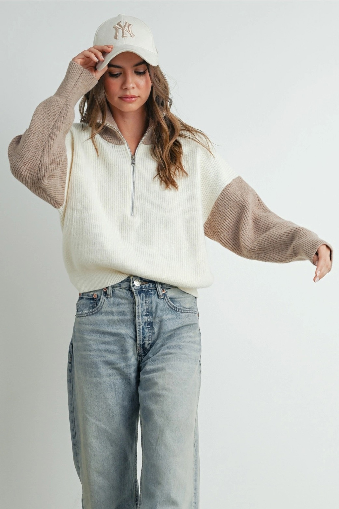 Micah Color Block Collar Half Zipper Pullover Sweater | Women's Winter Style | Neutral