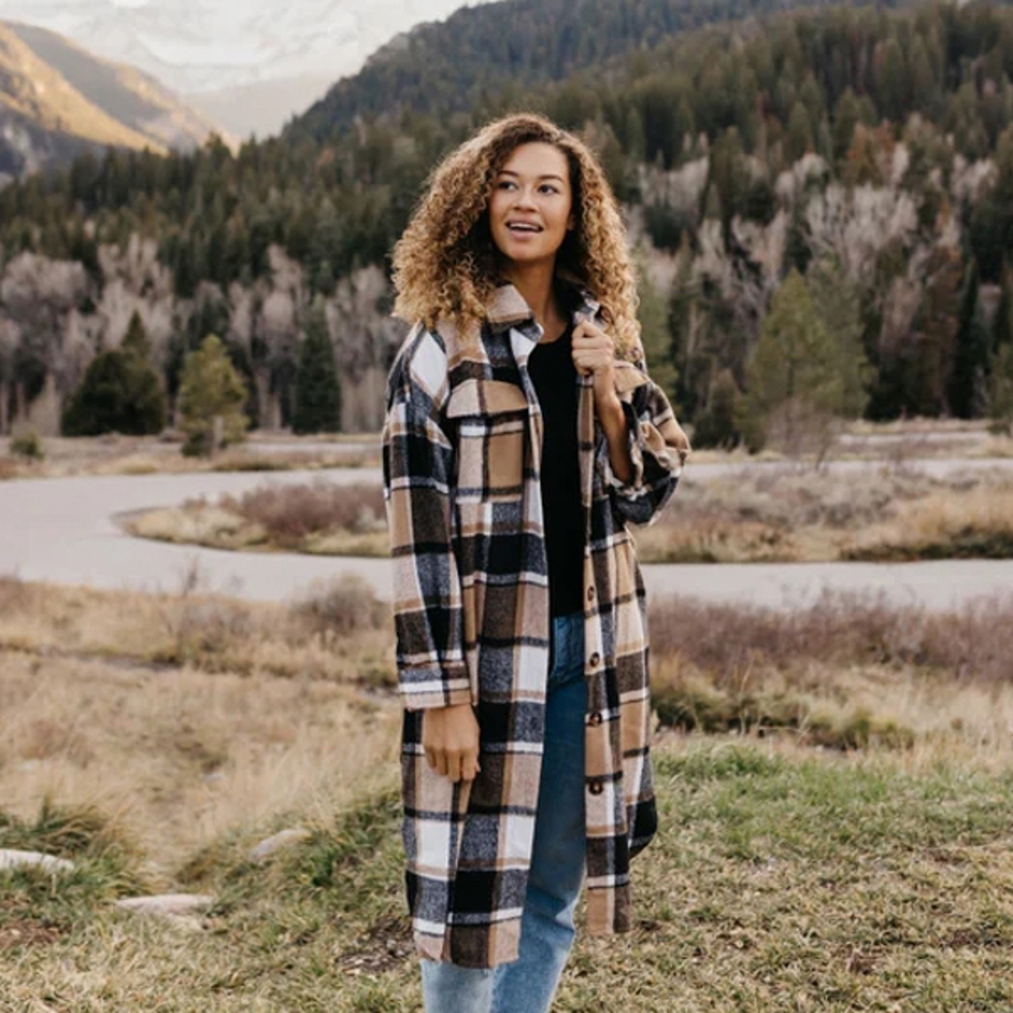 Shackets are all the rage this season, and our longer styles are such a cute statement piece! These are perfect to layer with warmer jackets and feature side and front pockets.
