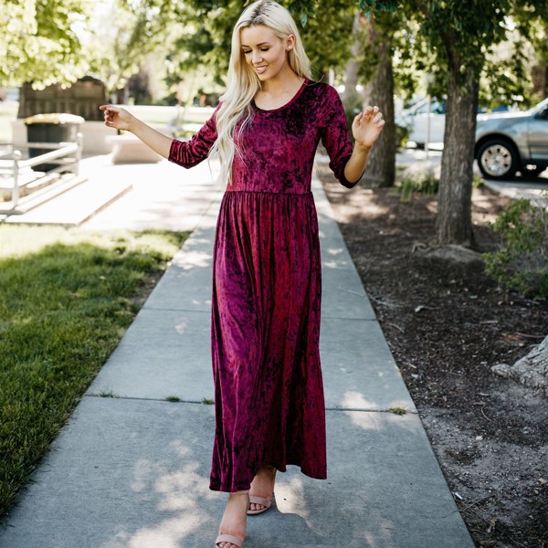 I was impressed with this Maxi dress! The material is thick and it is well made. I am 5'10" and the length on the Large dress was about 2 inches above my ankle! I love that it was that long!! I am long waisted so I wish that the waist seam was about an inch longer but it would be fine on most women. The sleeves are 3/4 length and are very fitted.