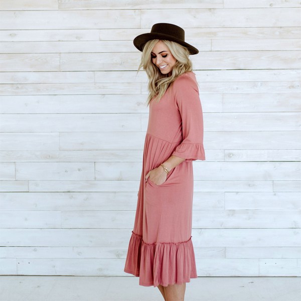 I’m 5’2 and pre- pregnancy I wear a size 10-12 so I bought the size large in this dress , it is a little longer than I like but not too bad-and other than that it’s true to size... nice material and vey comfortable to wear. Would like to get another one to show off my baby bump!