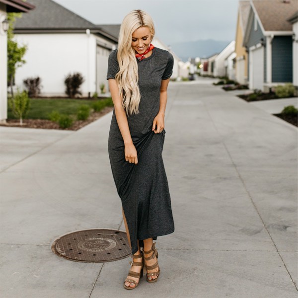 My favorite dress! I own 3 and will be purchasing more! T-shirt material and it washes great. I’m 5’4 120# and the small is perfect