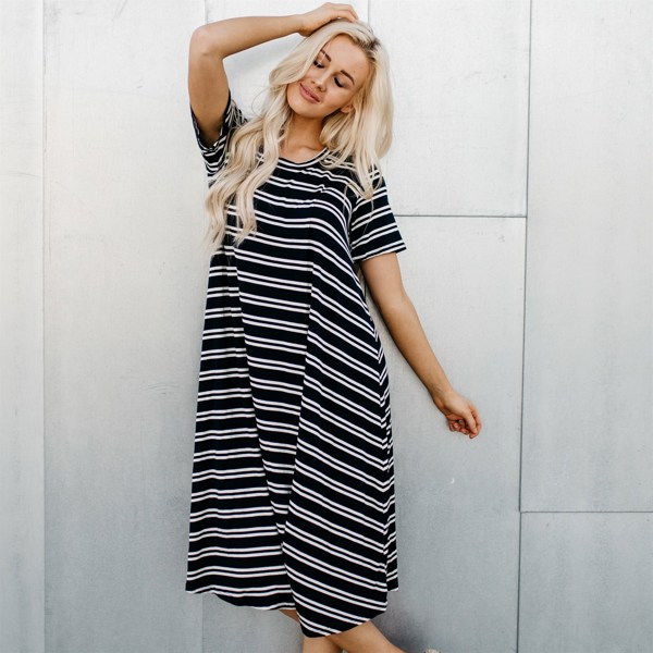 Love love love these Carlee swing dresses! Bought one for each of my daughters and older grand daughters in the red stripped. The fabric is light weight, which we love, and lots of room for comfort, which we love! We will be wearing these on Christmas Eve and Christmas day as our night shirts (dresses). I'll buy additional ones in other colors as they restock. Also a special thank you to the Customer Service department, AKA Leigh; she was so helpful in my need to exchange a couple of dresses in smaller sizes. This company truly knows what customer care and service means. Thank you all at Sign Here Signature Clothing- you're A+A+A+ Size- usually get an XL in dresses; a large fits great!