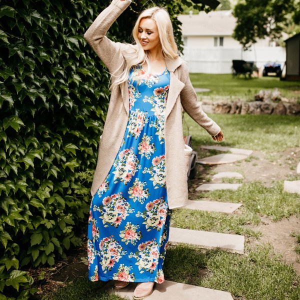 Great dress didn't realize it pockets, so when I saw it did it made even happier with the purchase. Material is super soft and comfortable, I feel like I could wear this dress year round. The color is just what I expected, and the fit was perfect!