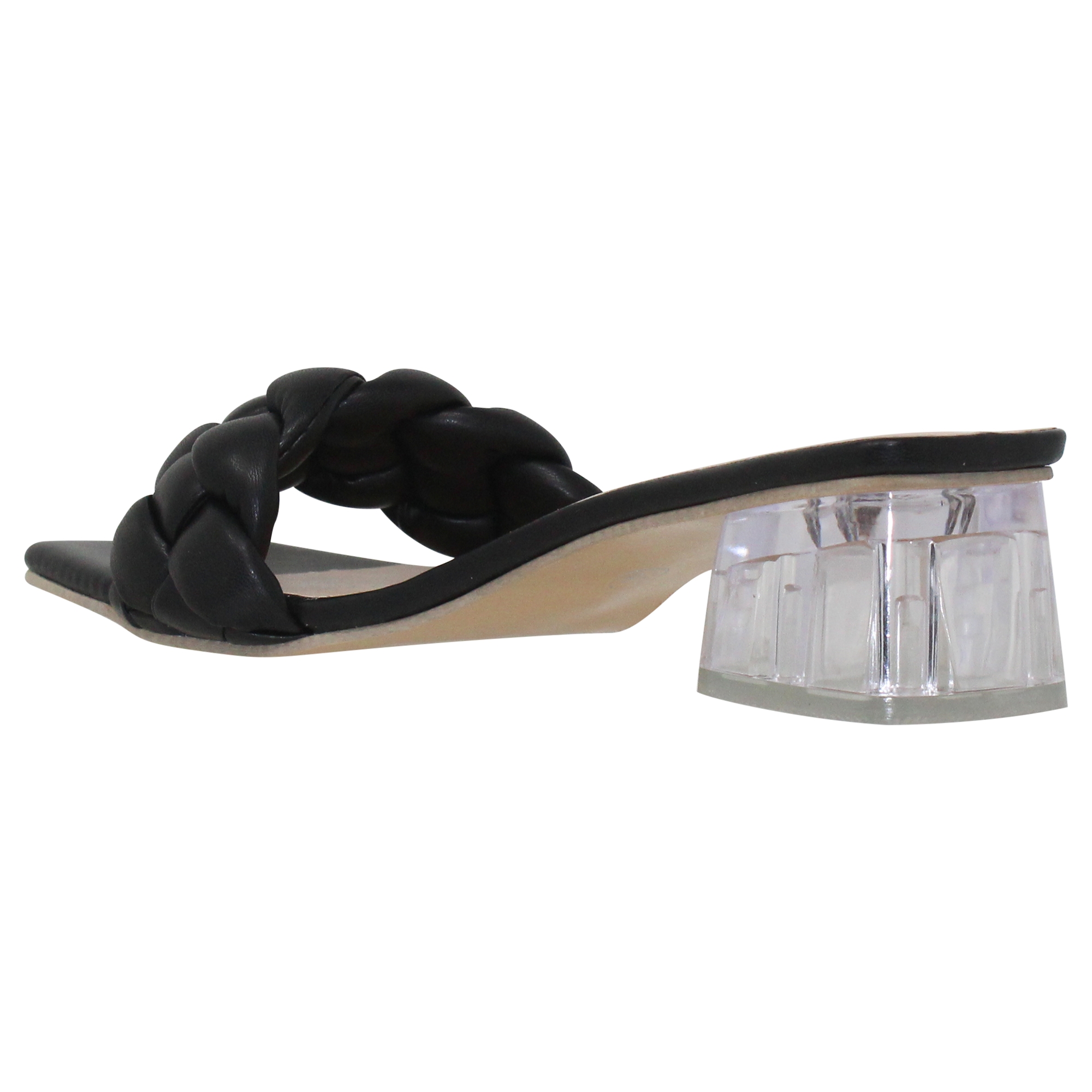 SOBEYO Women's Strappy Low Clear Heels Sandals Braided