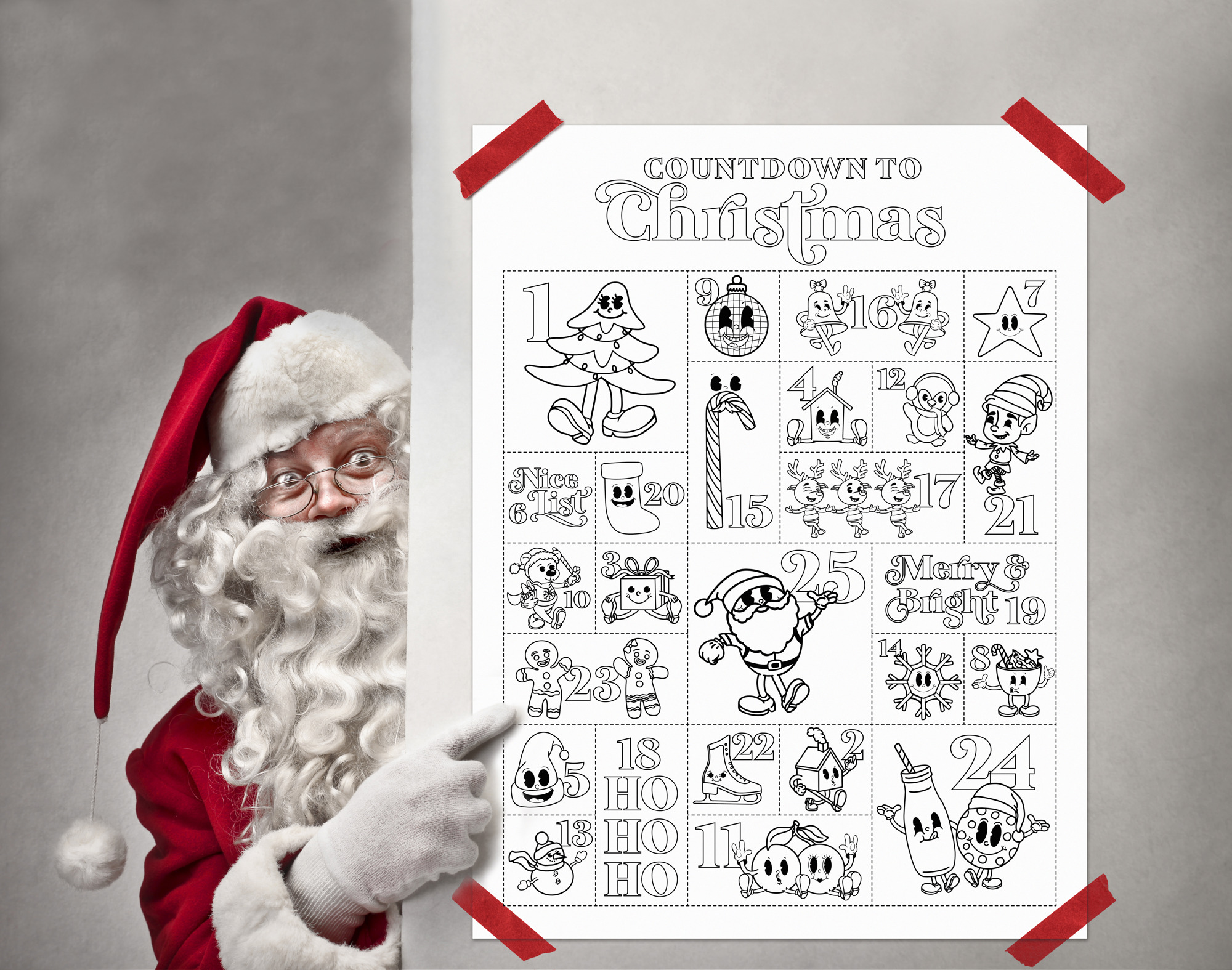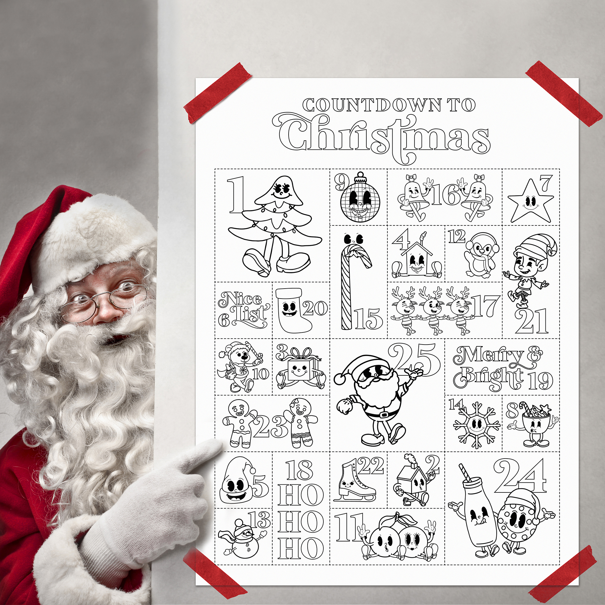 Don’t let your Christmas Countdown fizzle out—grab yours now to start the holiday fun in style! Seasonal favorites fly off the shelves fast, so snap up this limited-edition poster today. Need customization or have questions? Just holler—our friendly shop policies and speedy shipping have your back!Looking for a fun and retro way to countdown the days until Christmas? Look no further than our Christmas Coloring Countdown Poster! This poster features festive and charming Christmas characters that your kids will love coloring. Plus, coloring is not just fun for kids - it also has a host of benefits, like improving handwriting, developing hand-eye coordination, and stimulating creativity. So get your family together and start counting down to Christmas the right way with our Christmas Coloring Countdown Poster!