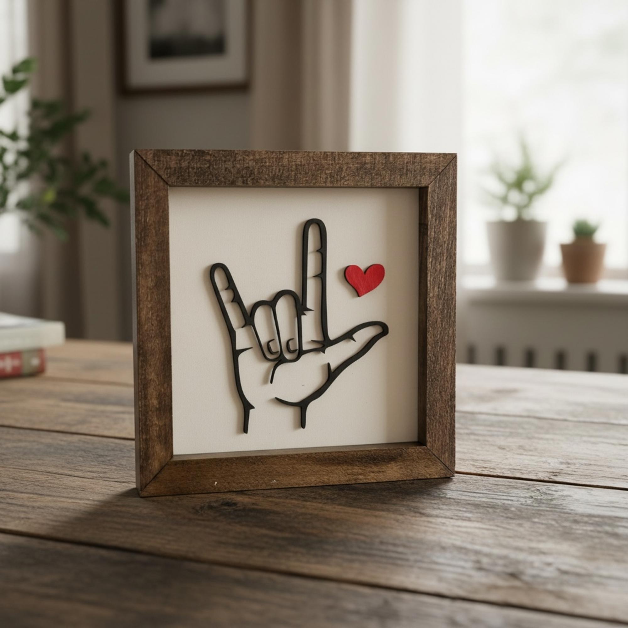 I love you sign. Sign Language Sign. Valentine's Gift. Framed Art.