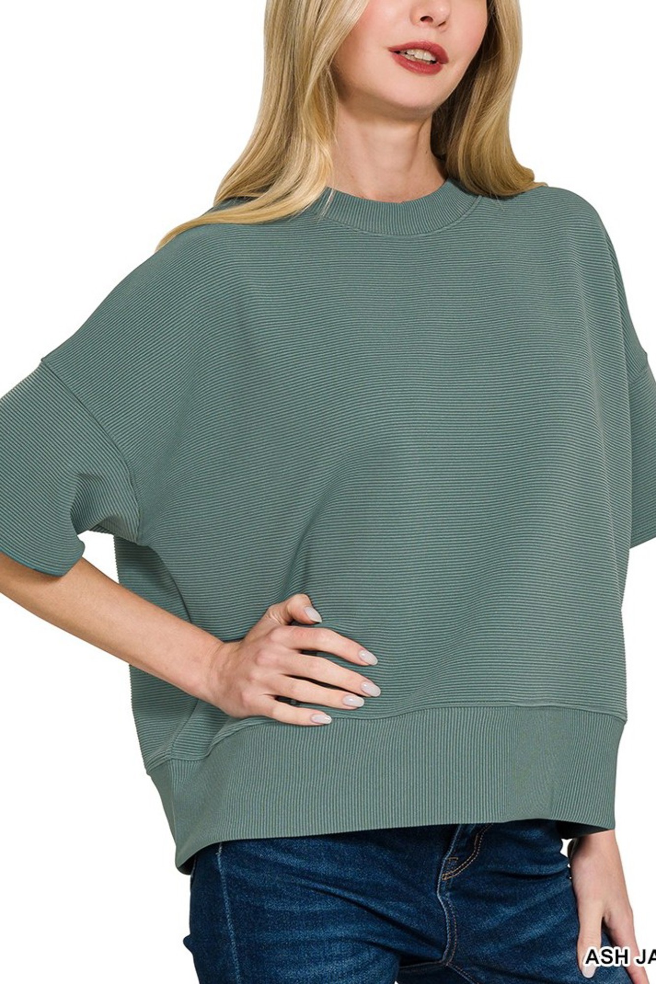 Add this favorite to your wardrobe. The ribbed material is perfect for casual or dressy casual wear. A perfect length to go with denim or work pants.