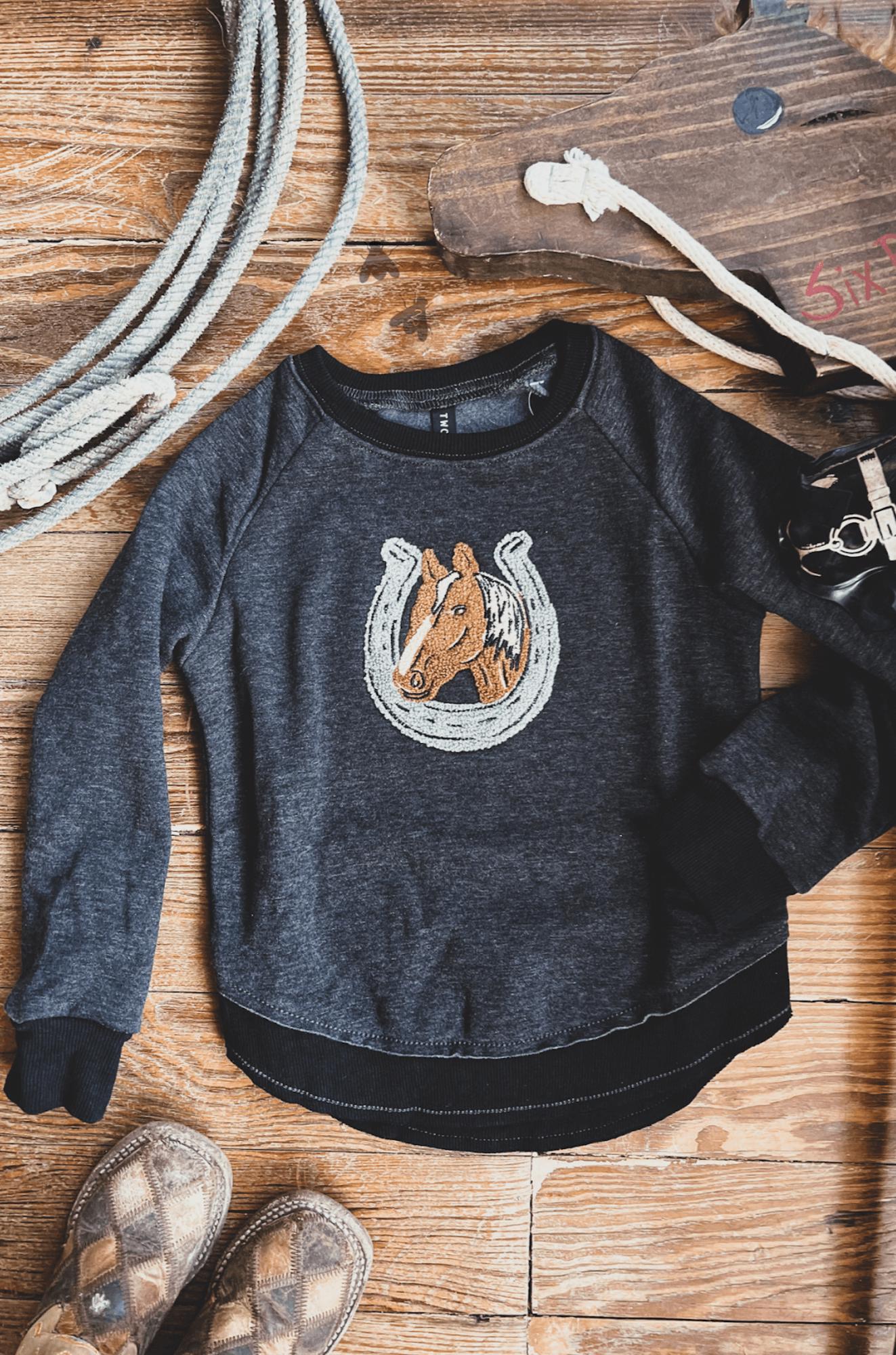 embroidered horse and shoe patch