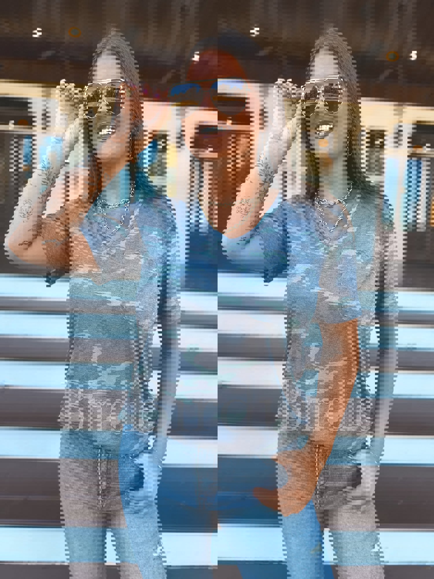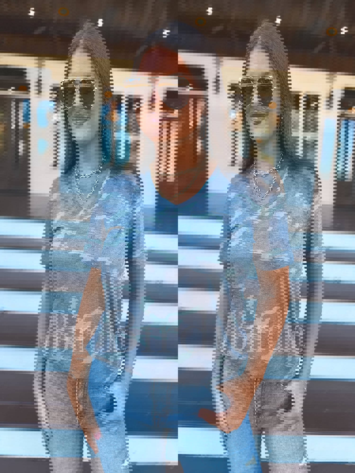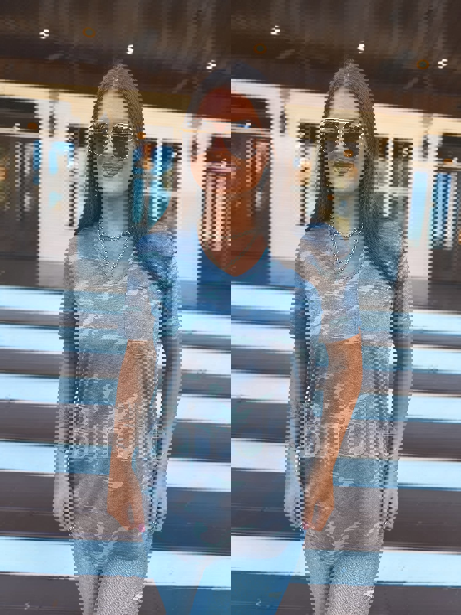 Birdie Soft Style V Neck Pocket Tee in Army Camo