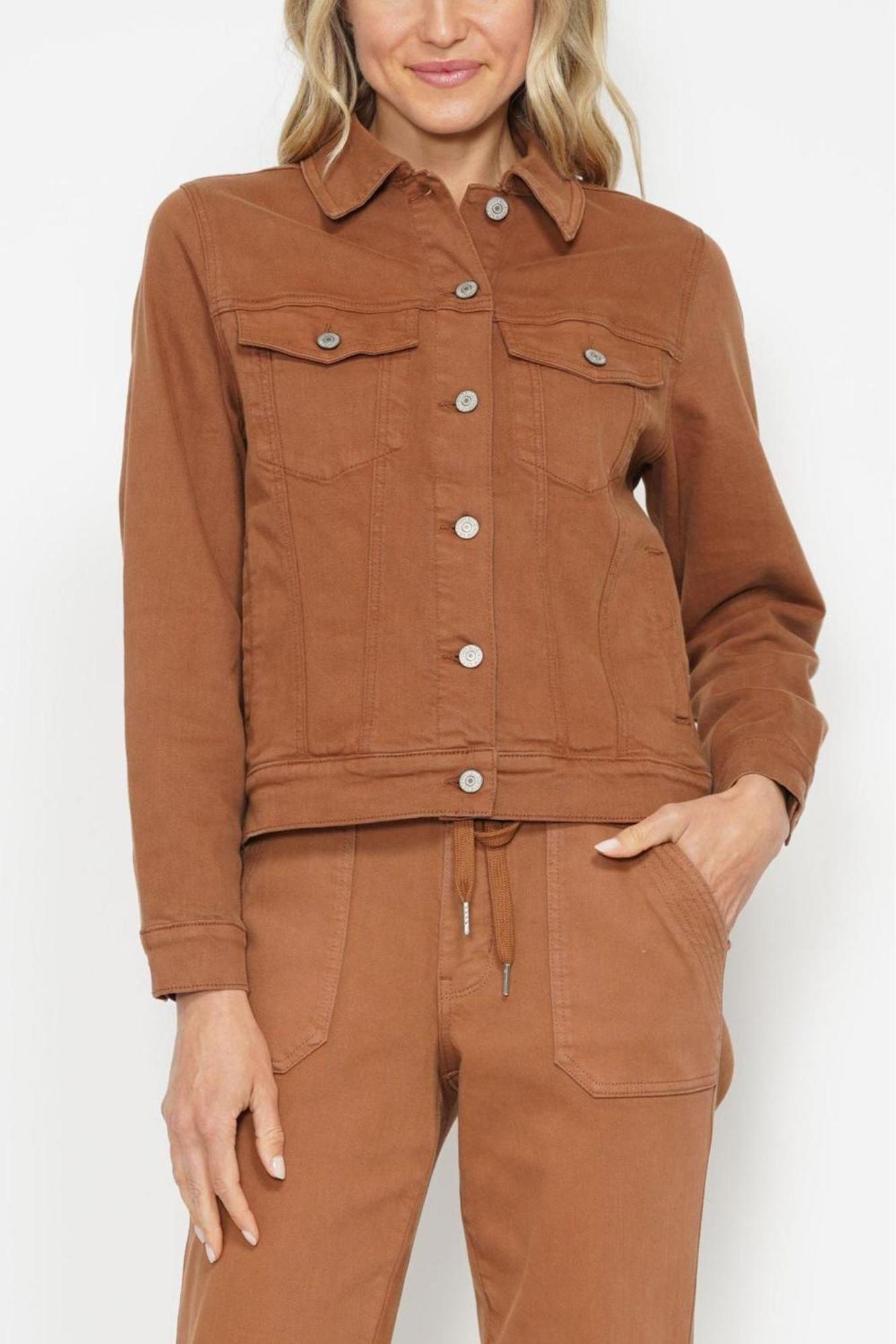 Judy Blue Garment Dyed Camel Jacket 7875 The Judy Blue camel jacket offers a perfect true-to-size fit, combining style and practicality. Featuring front flap pockets and convenient side pockets, it provides ample storage while maintaining a sleek look. The button-front design adds a classic touch, making this jacket a versatile addition to your wardrobe for effortless everyday wear. Material: 94% Cotton, 5% Polyester, 1% Spandex Regular Length: 23.5” Plus Length: 25.5”
