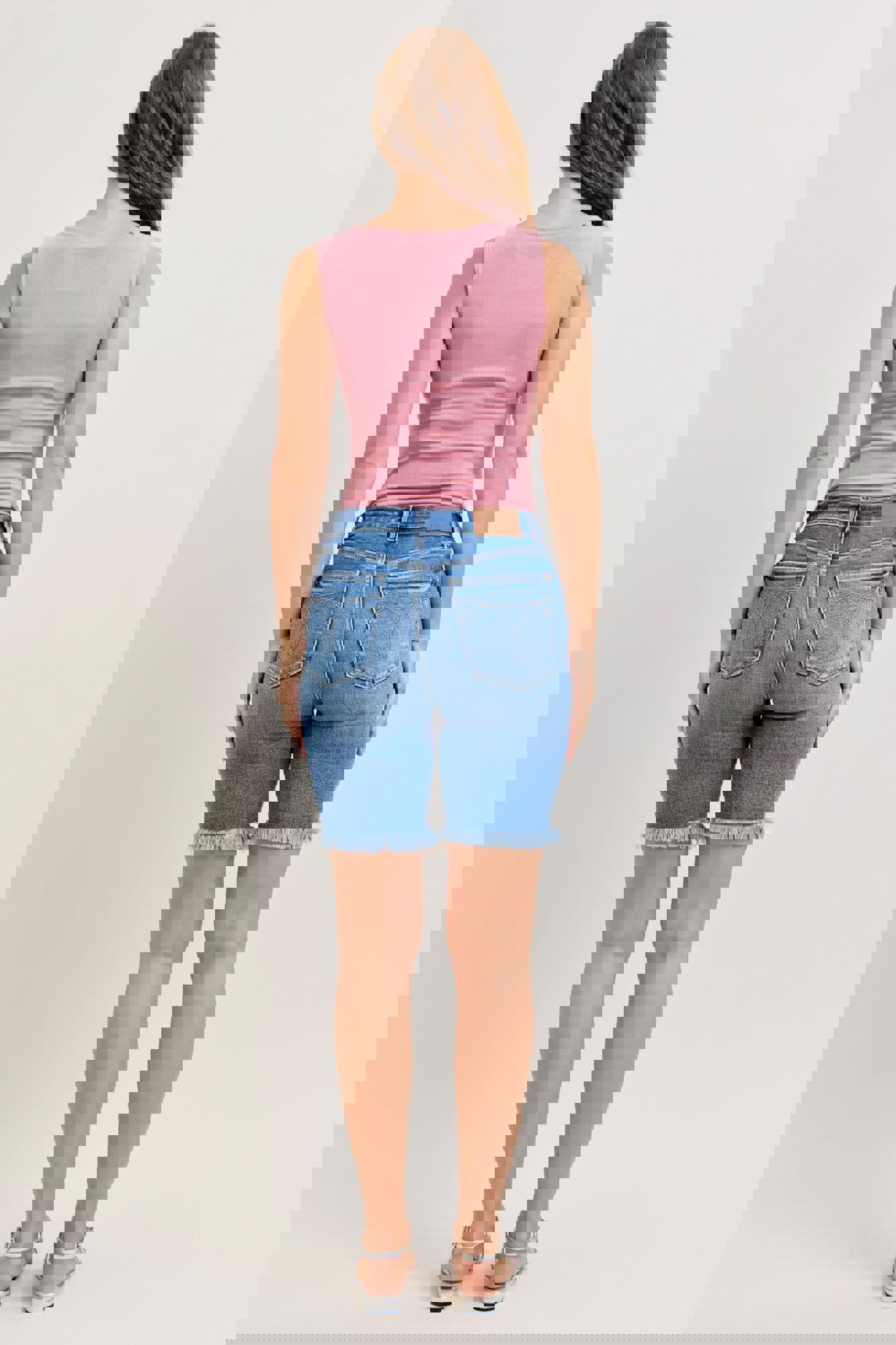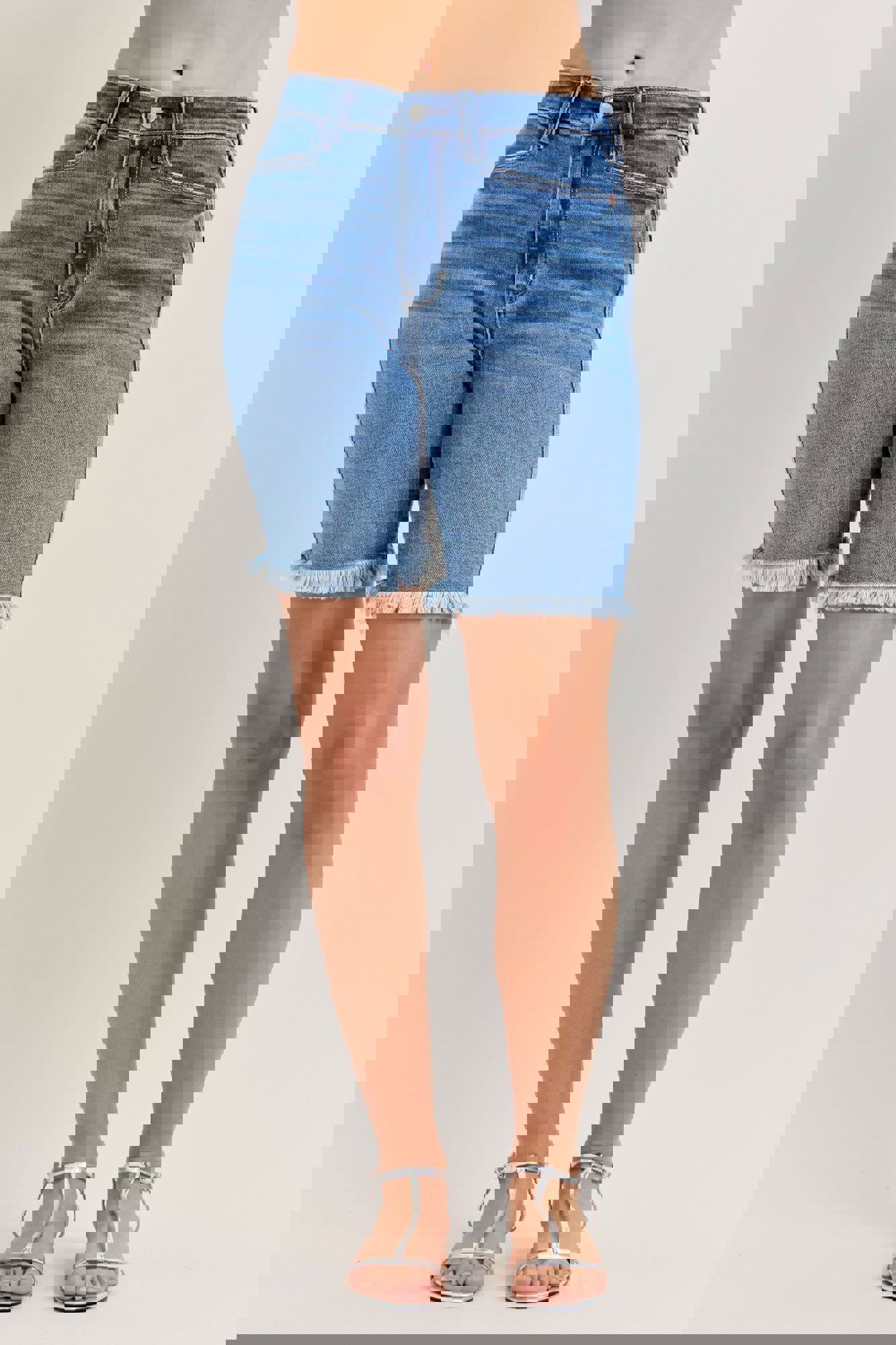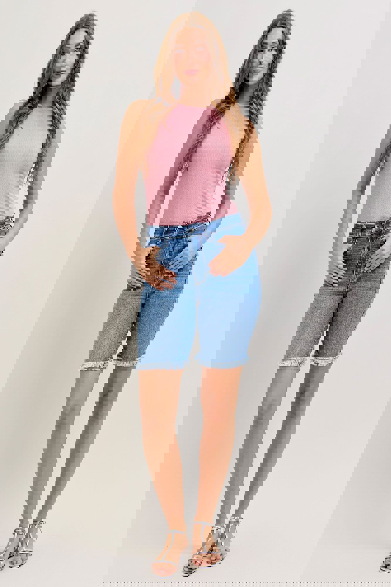 Classic coverage meets casual style with these High Waist Bermuda Denim Shorts from Judy Blue. Designed in a versatile medium wash, this pair keeps things clean and wearable with a non-distressed finish, while the frayed hemadds just the right touch of laid-back charm.