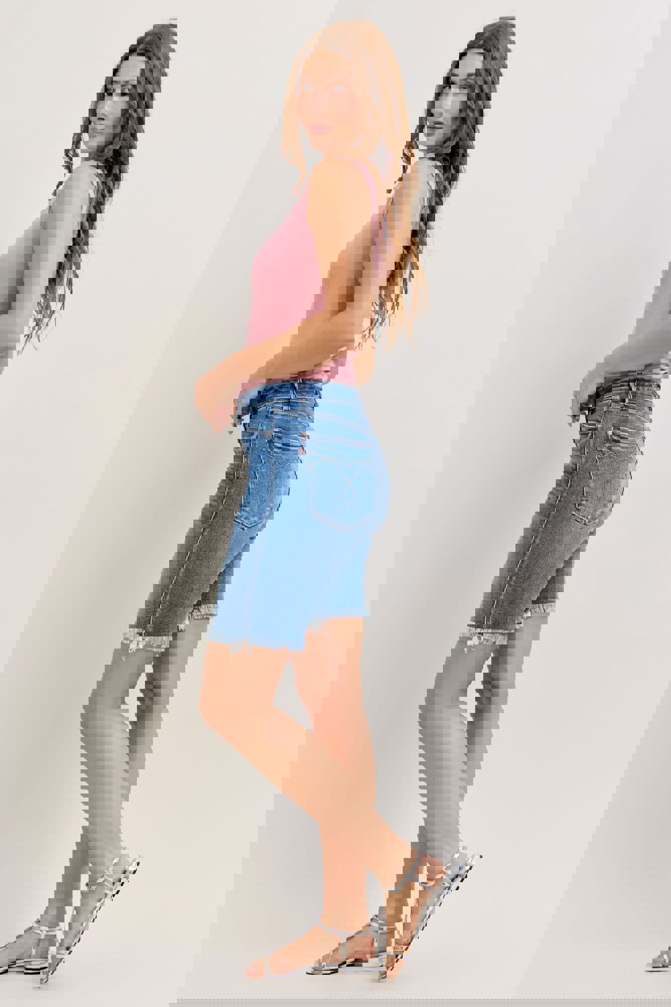 With a flattering high-rise fit and Judy Blue’s signature stretch denim, these bermudas deliver comfort, coverage, and everyday versatility—perfect for errands, travel, and casual summer days.