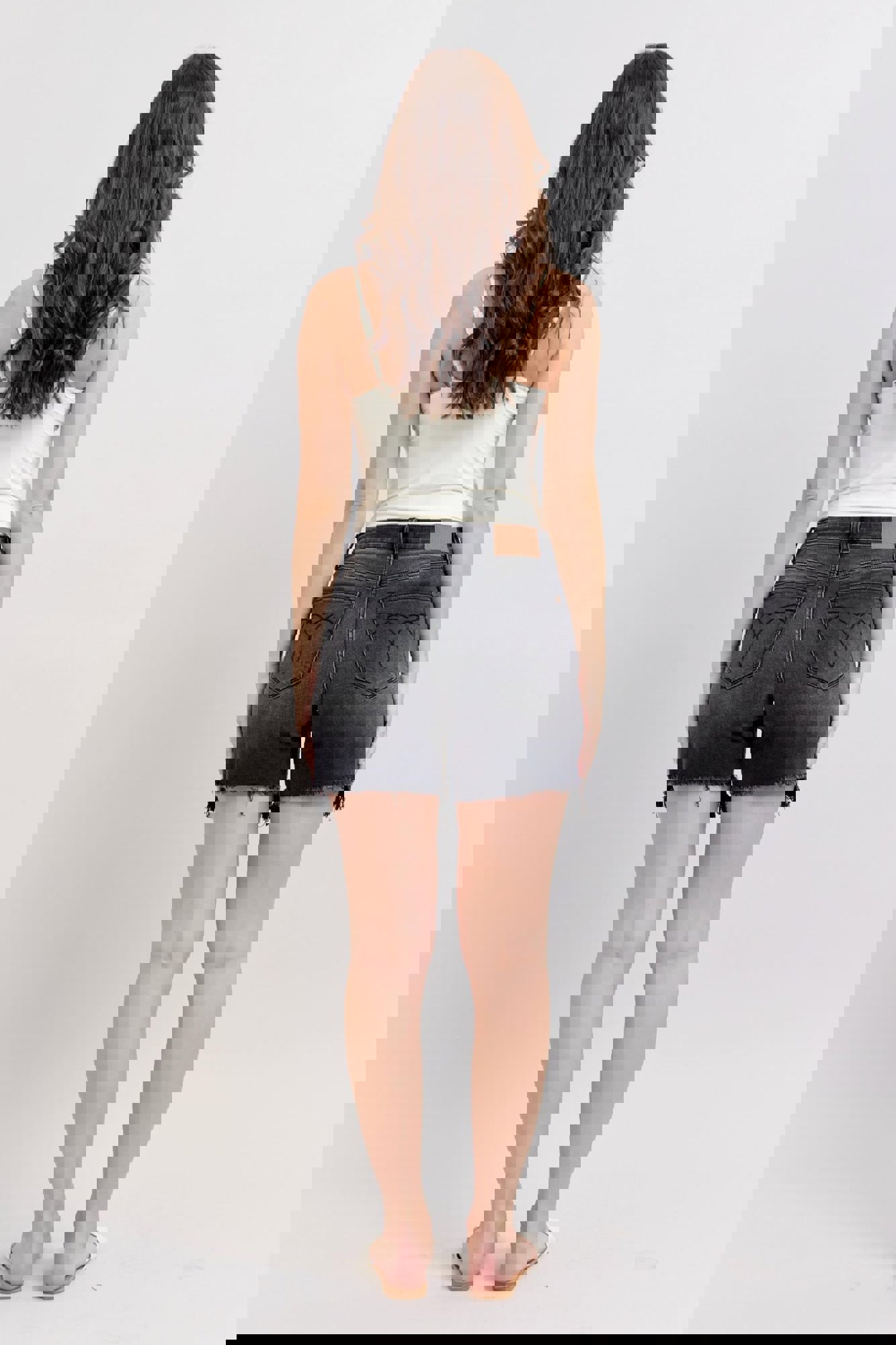 Judy Blue High Waist Black Cut Off Dad Denim Short 15286