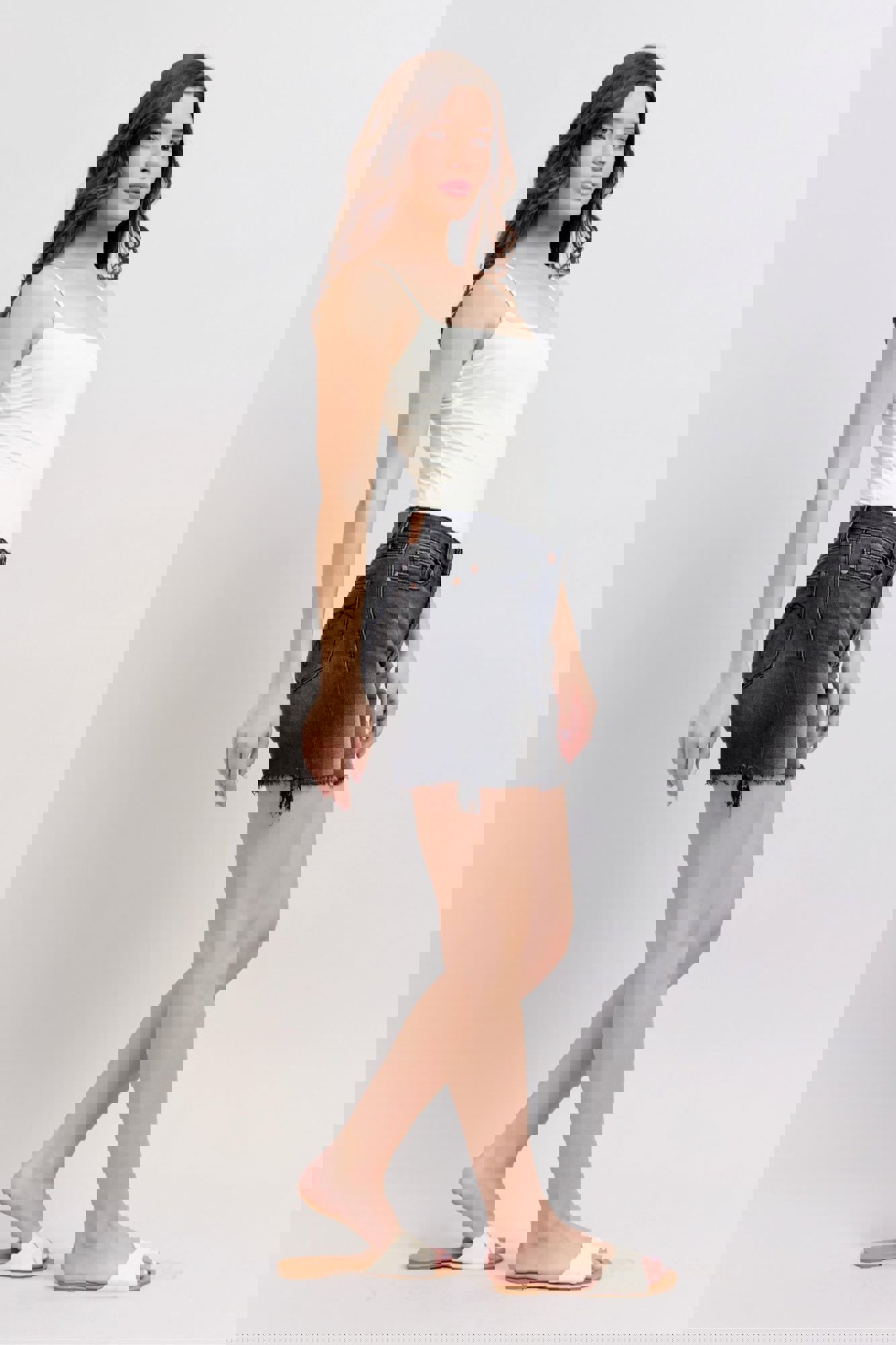 Judy Blue High Waist Black Cut Off Dad Denim ShortStyle #JB15286 Effortlessly cool with a touch of edge, these High Waist Black Cut Off Dad Shorts from Judy Blue are a summer staple. Designed with a flattering high-rise fit and a relaxed dad short silhouette, they offer comfort and laid-back style you’ll reach for agai