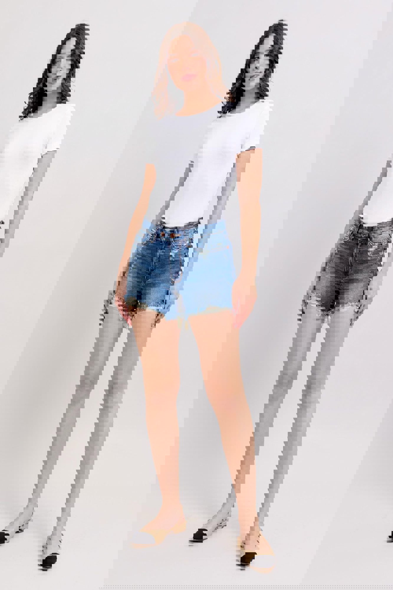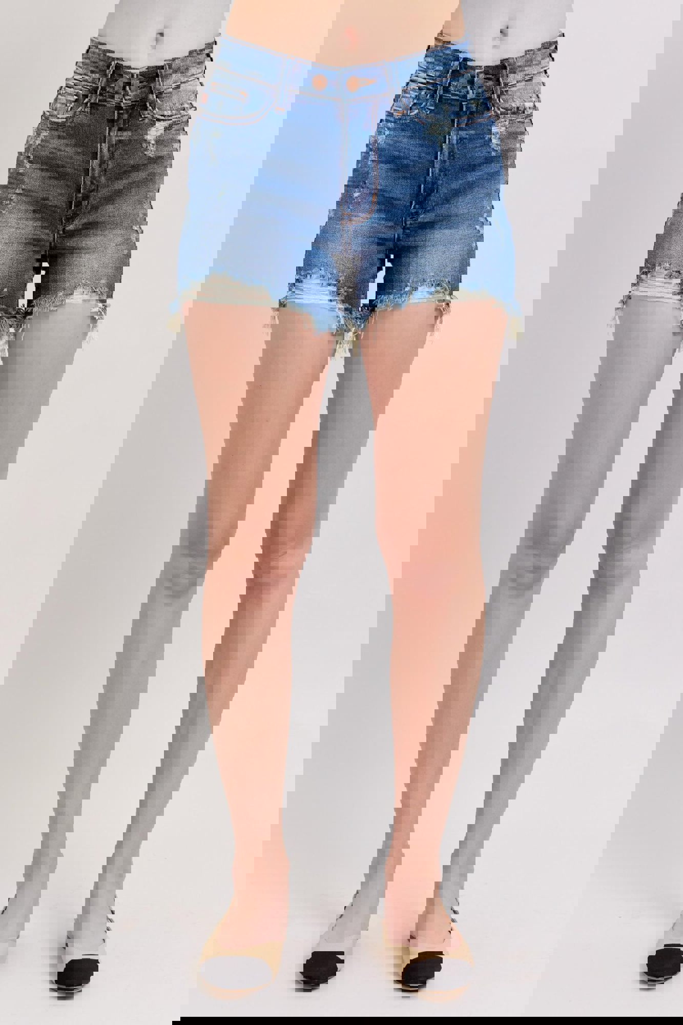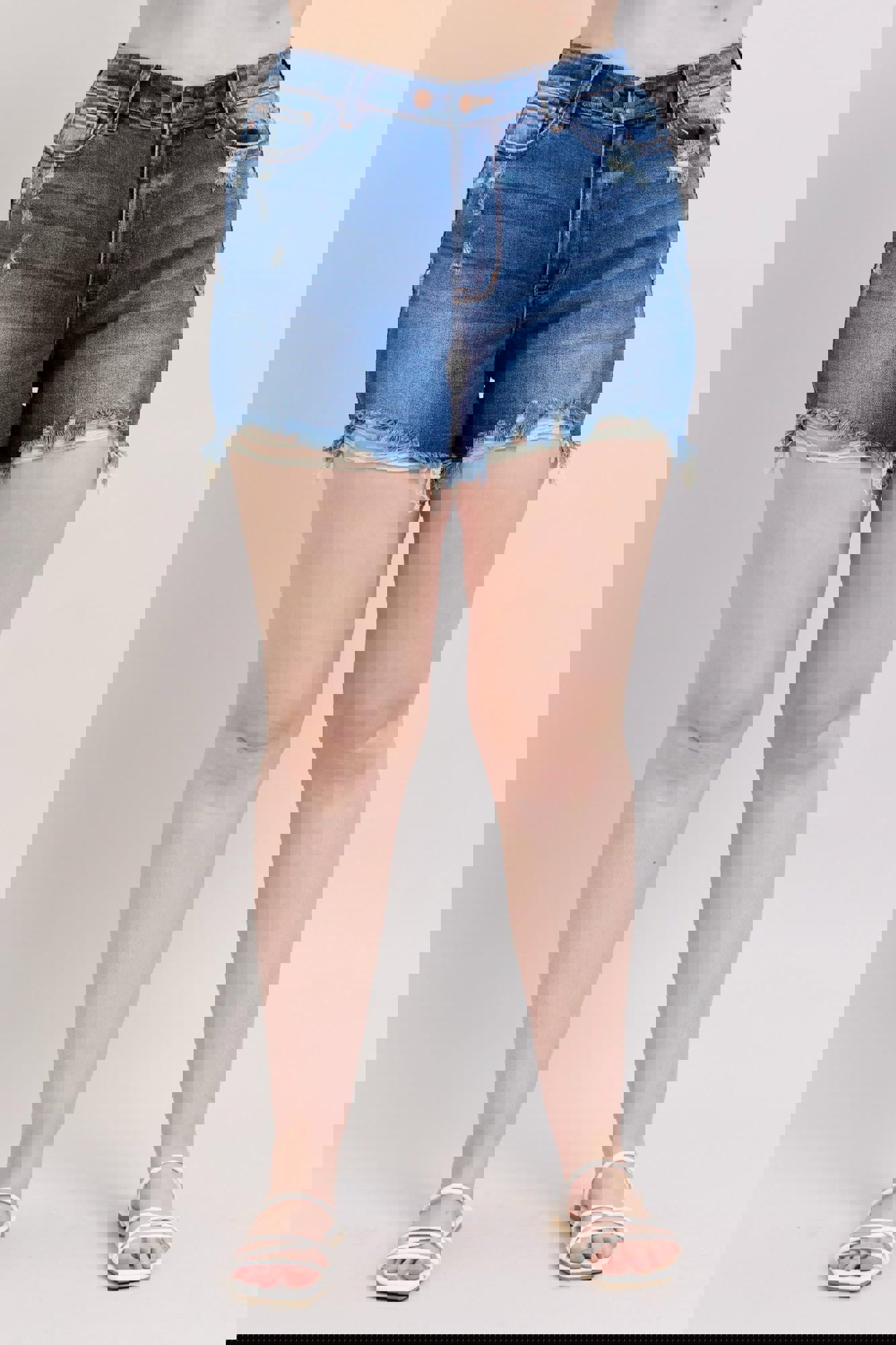 Judy Blue High Waist Double Button Destroyed Dad Denim ShortStyle #JB152103 Meet your new warm-weather favorite! These High Waist Double Button Dad Shorts from Judy Blue are a best sellerfor a reason. Designed in a versatile medium wash, they feature a trendy frayed, distressed hem and that relaxed “dad short” vibe eve