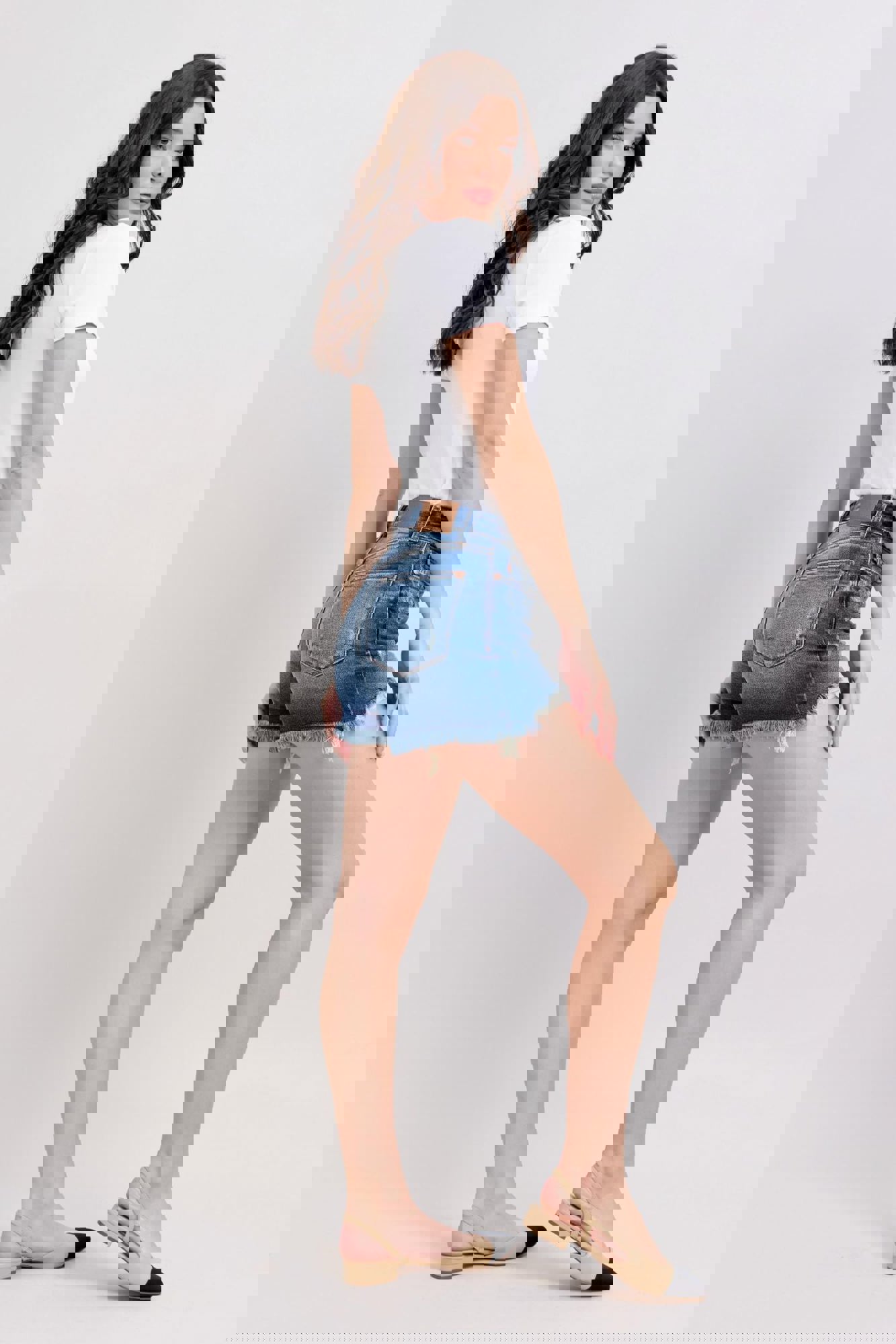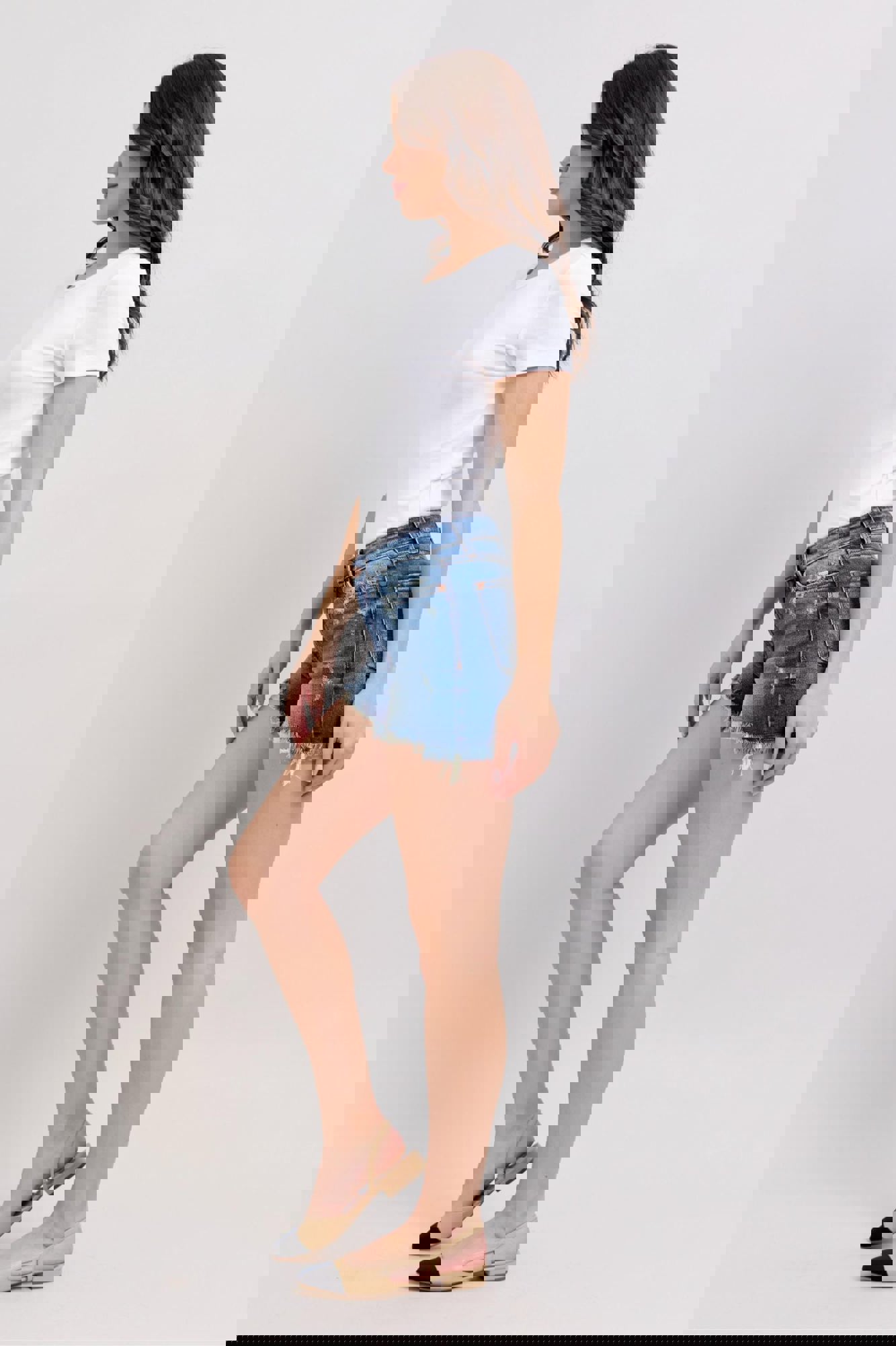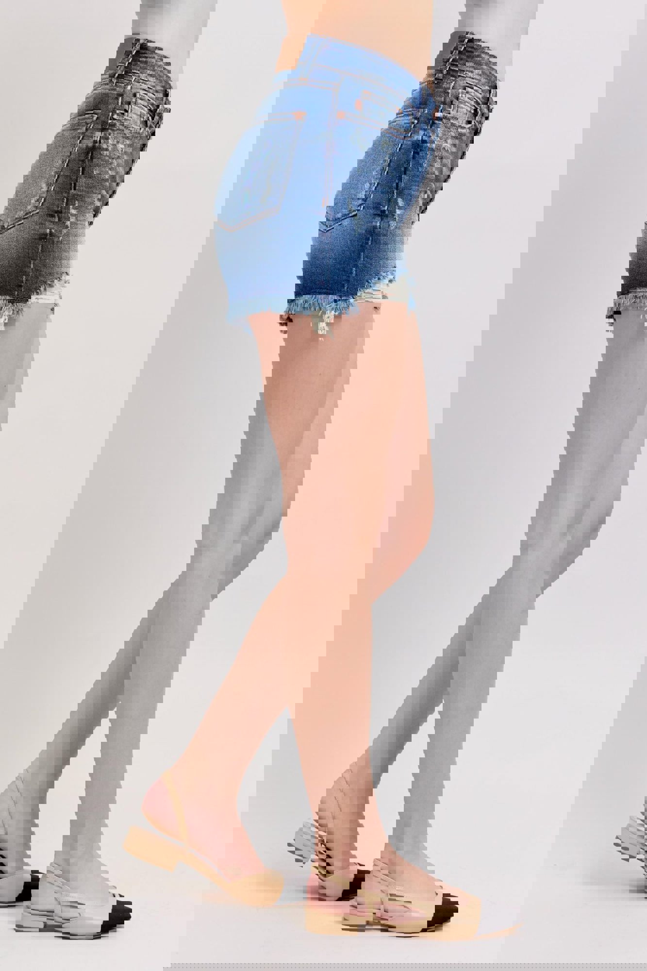 Judy Blue High Waist Double Button Destroyed Dad Denim ShortStyle #JB152103 Meet your new warm-weather favorite! These High Waist Double Button Dad Shorts from Judy Blue are a best sellerfor a reason. Designed in a versatile medium wash, they feature a trendy frayed, distressed hem and that relaxed “dad short” vibe eve