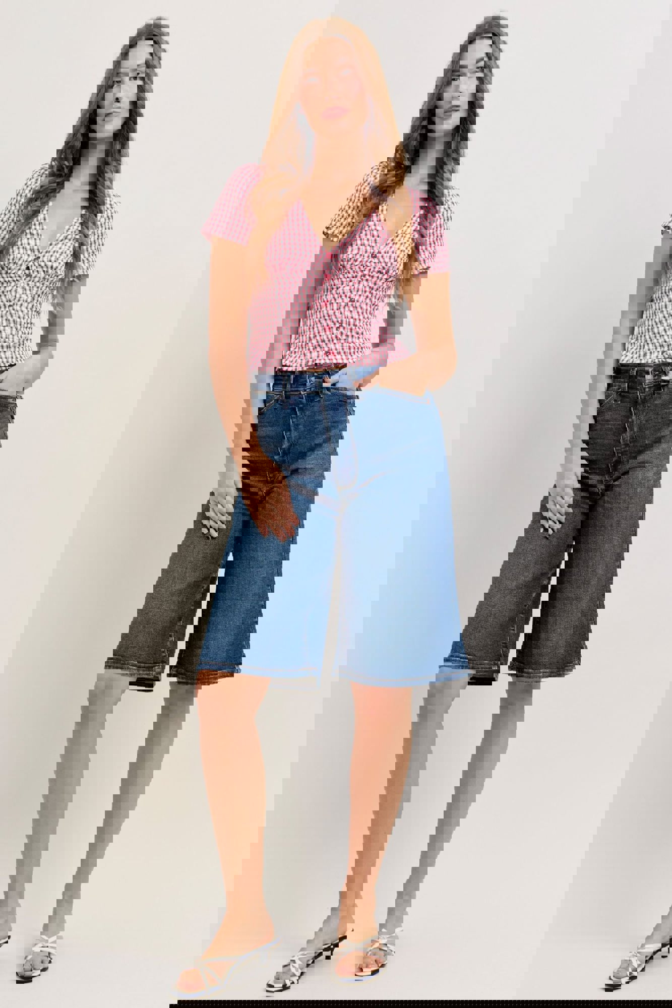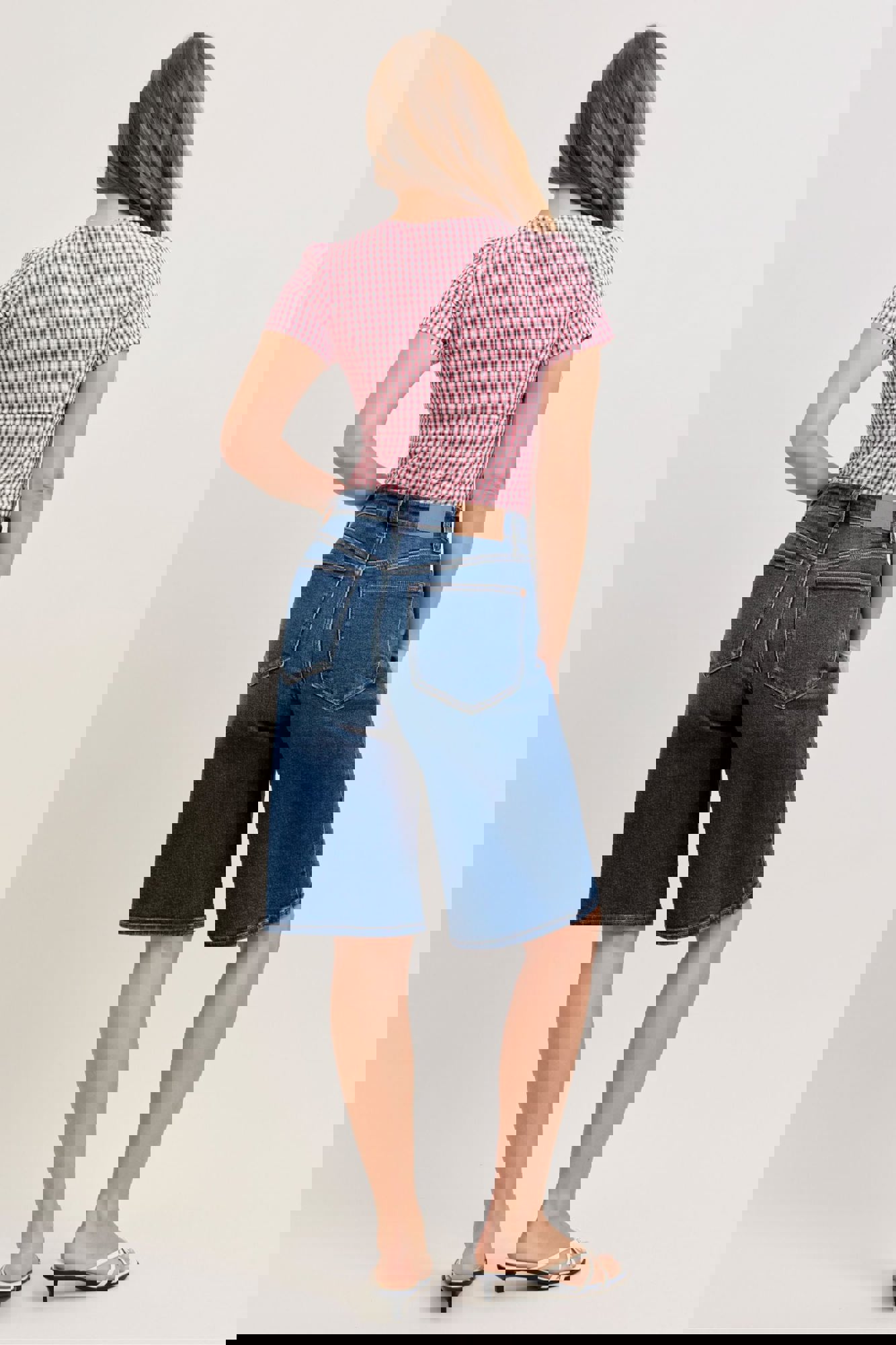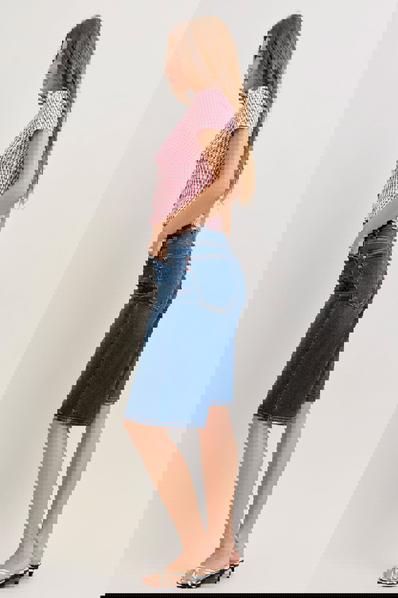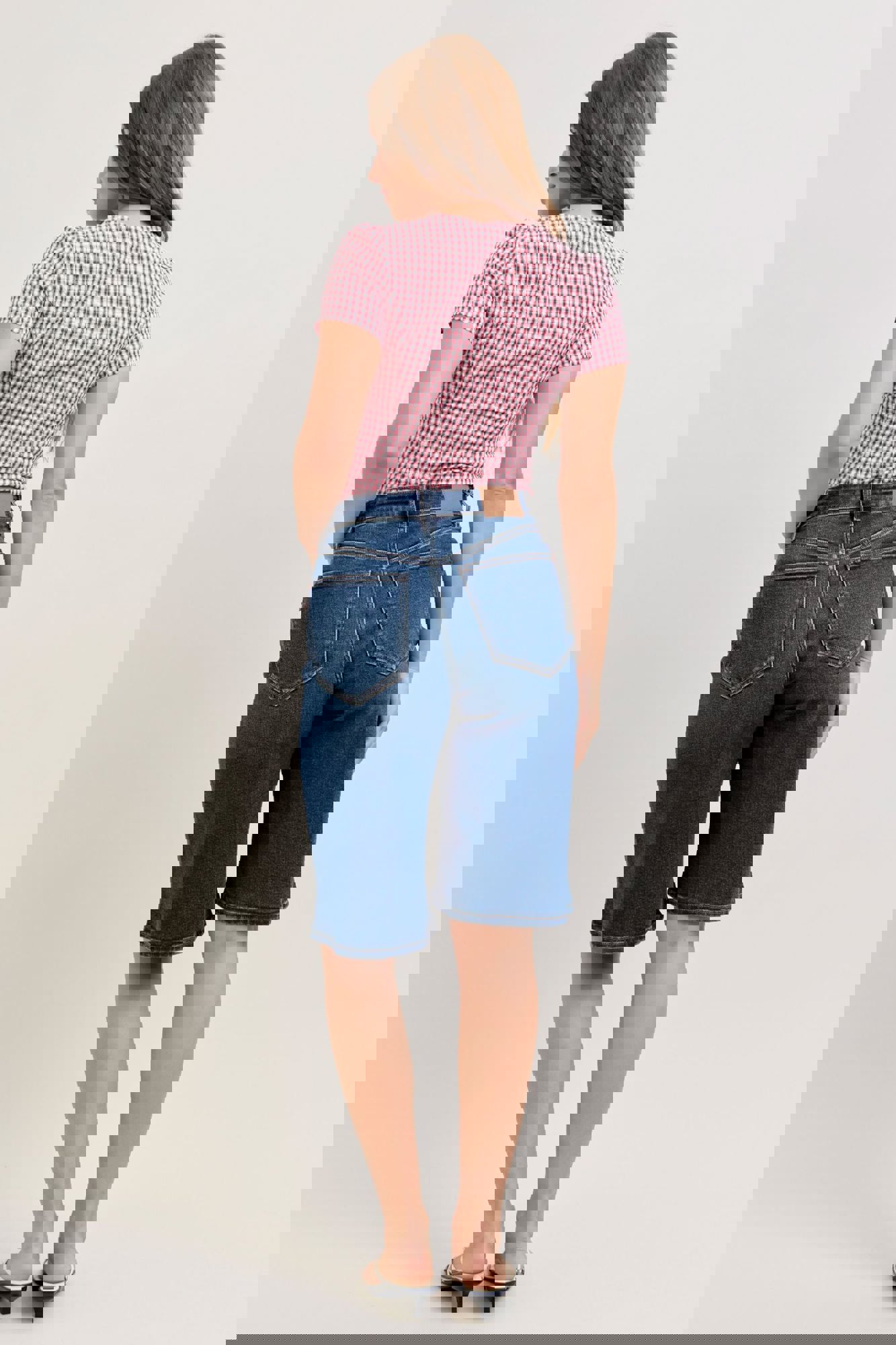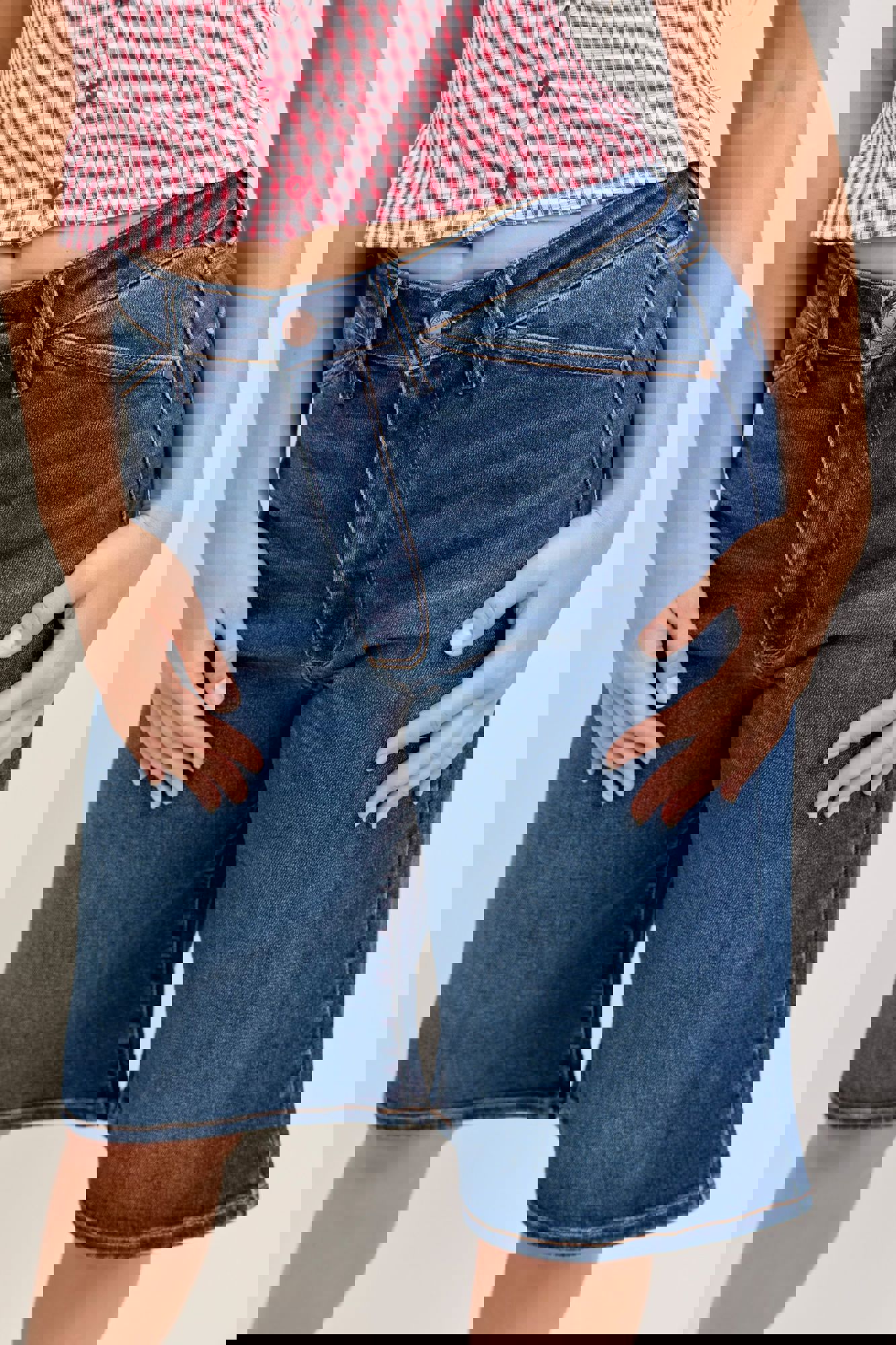Judy Blue High Waist Jort Denim ShortStyle #JB152111 Classic, cool, and right on trend—the Judy Blue High Waist Jort Denim Shorts are the perfect blend of comfort and coverage. Designed in a rich dark wash, these long-length shorts feature a clean, non-distressed finish for a polished, timeless look. With a flattering