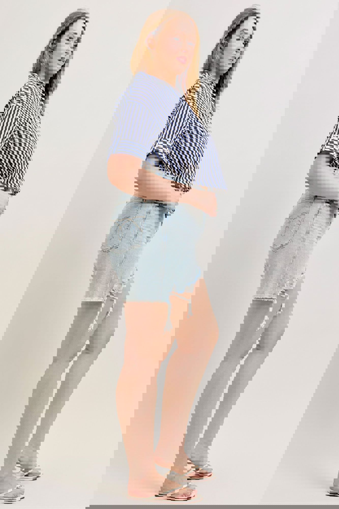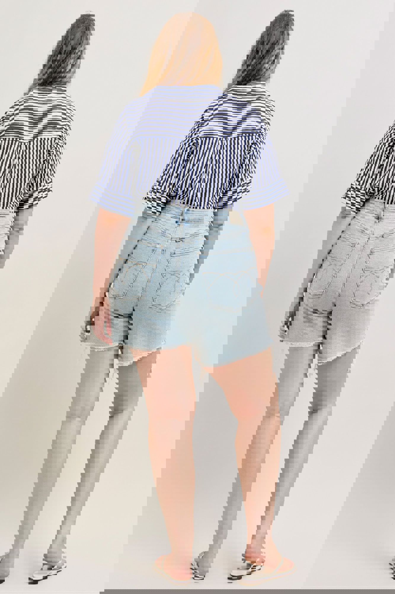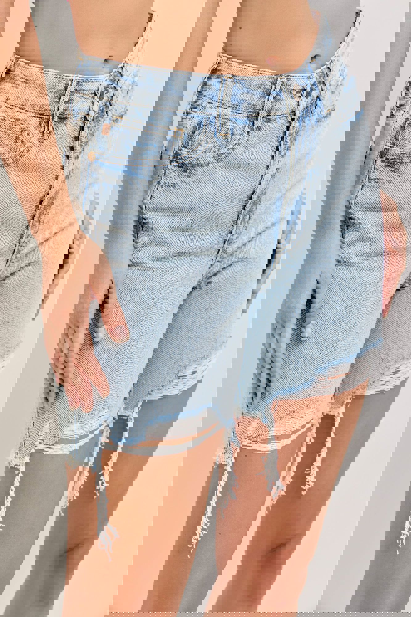Get the best of both worlds with the Judy Blue High Waist Rigid Magic Dad Shorts—structured where you want it and stretchy where you need it. Designed in a fresh light wash, these shorts feature a flattering high-rise fit, trendy distressed details, and a cut-off distressed hem for that perfectly lived-in look.