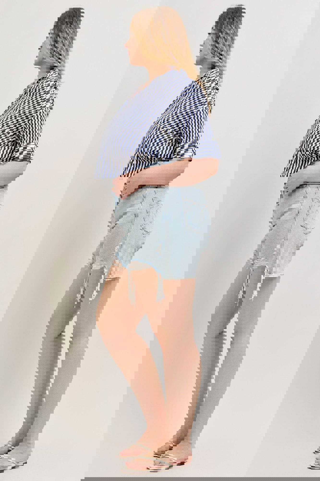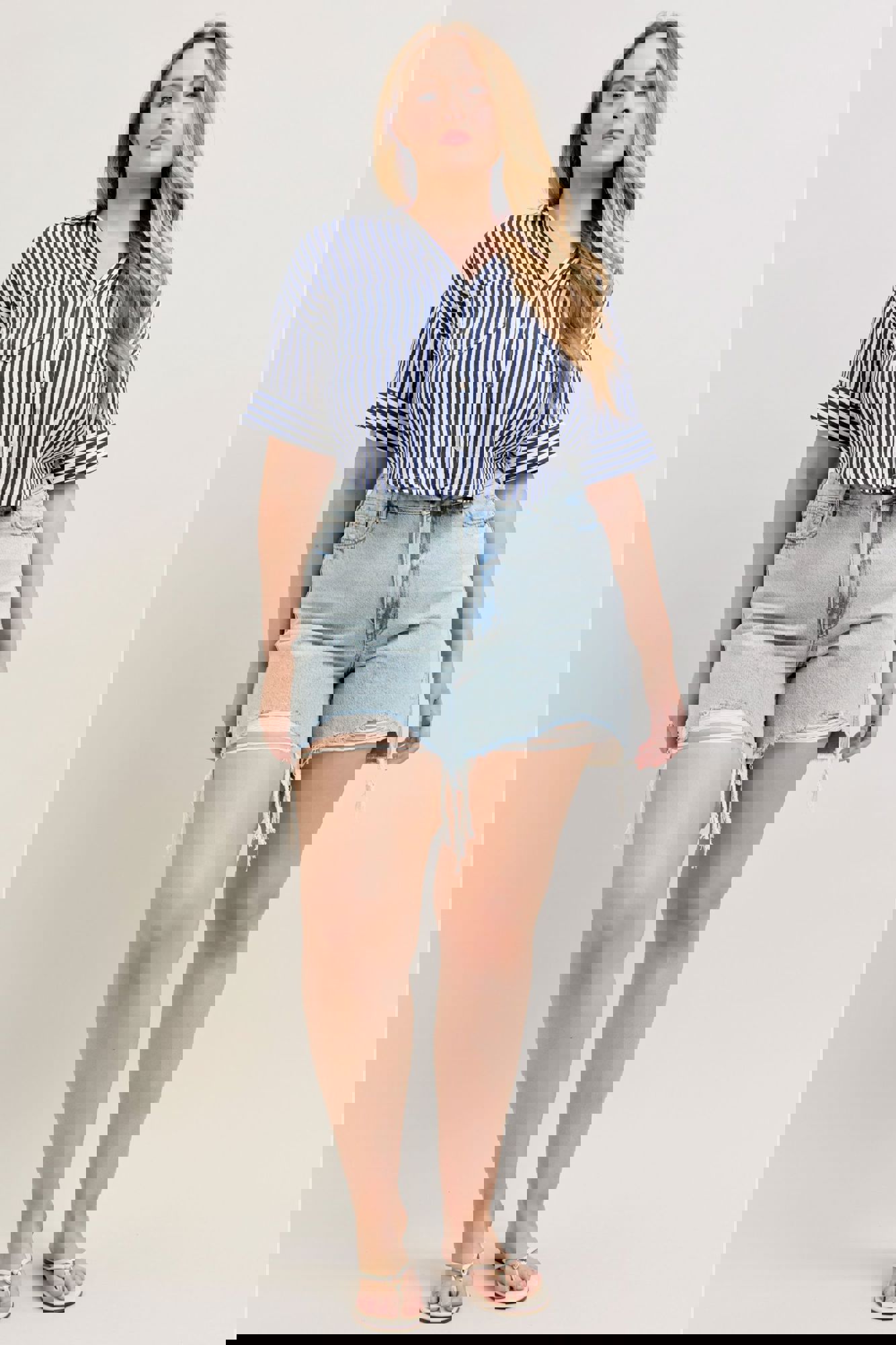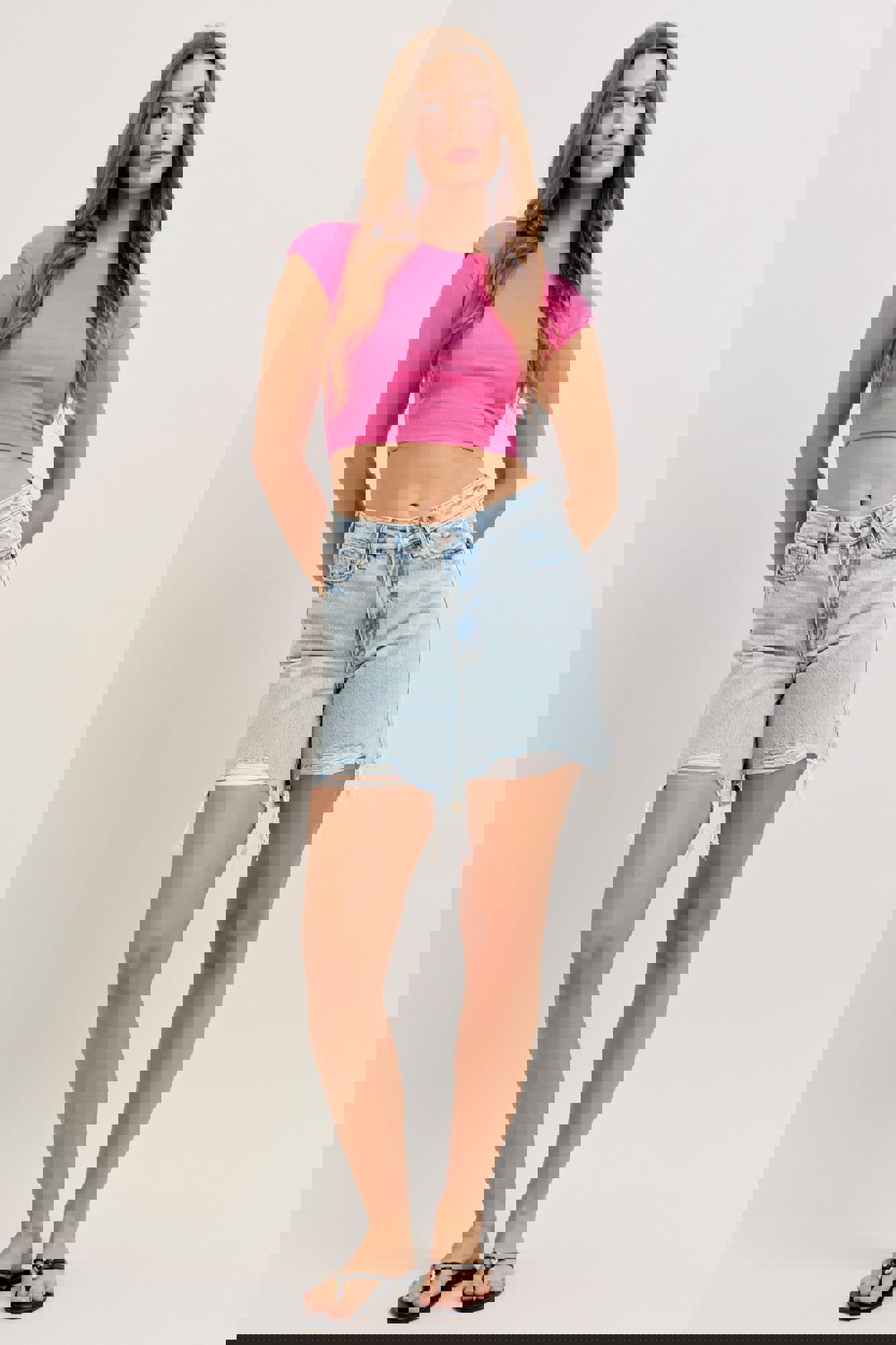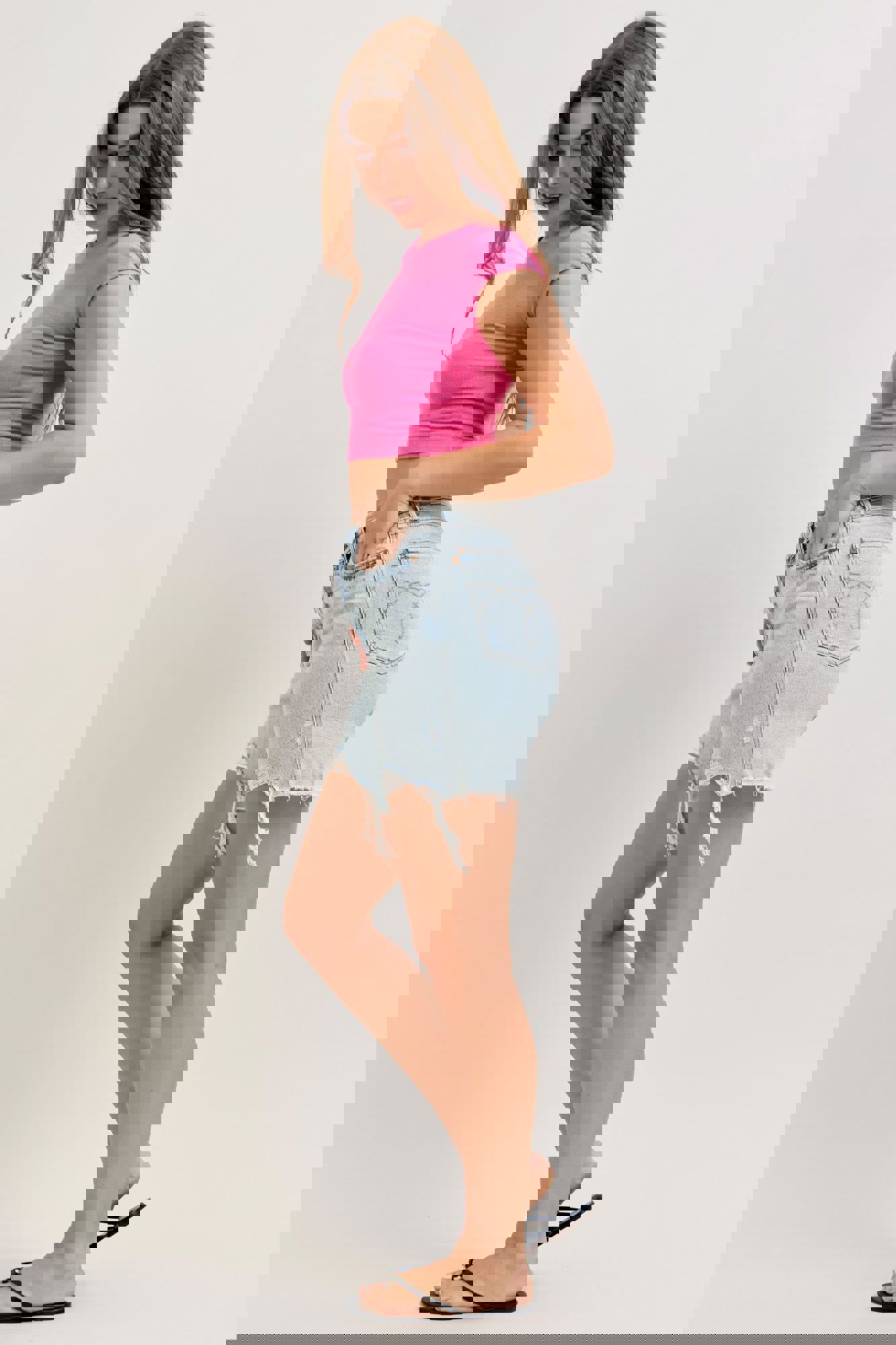 Get the best of both worlds with the Judy Blue High Waist Rigid Magic Dad Shorts—structured where you want it and stretchy where you need it. Designed in a fresh light wash, these shorts feature a flattering high-rise fit, trendy distressed details, and a cut-off distressed hem for that perfectly lived-in look.