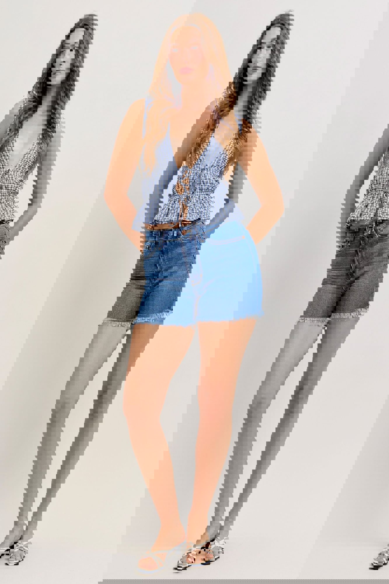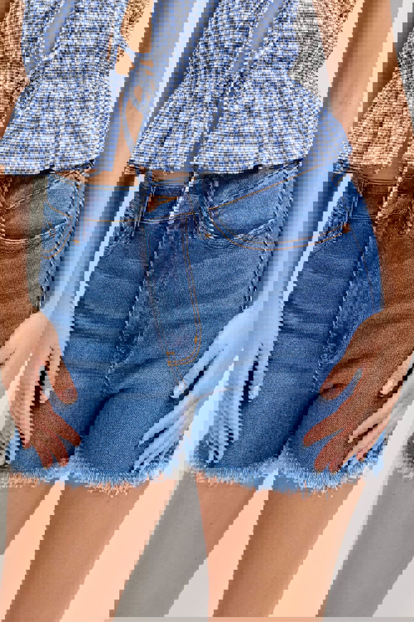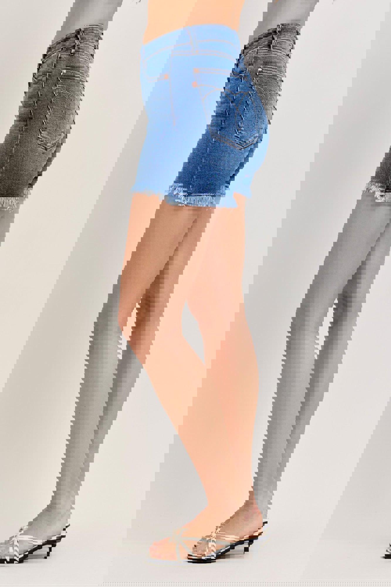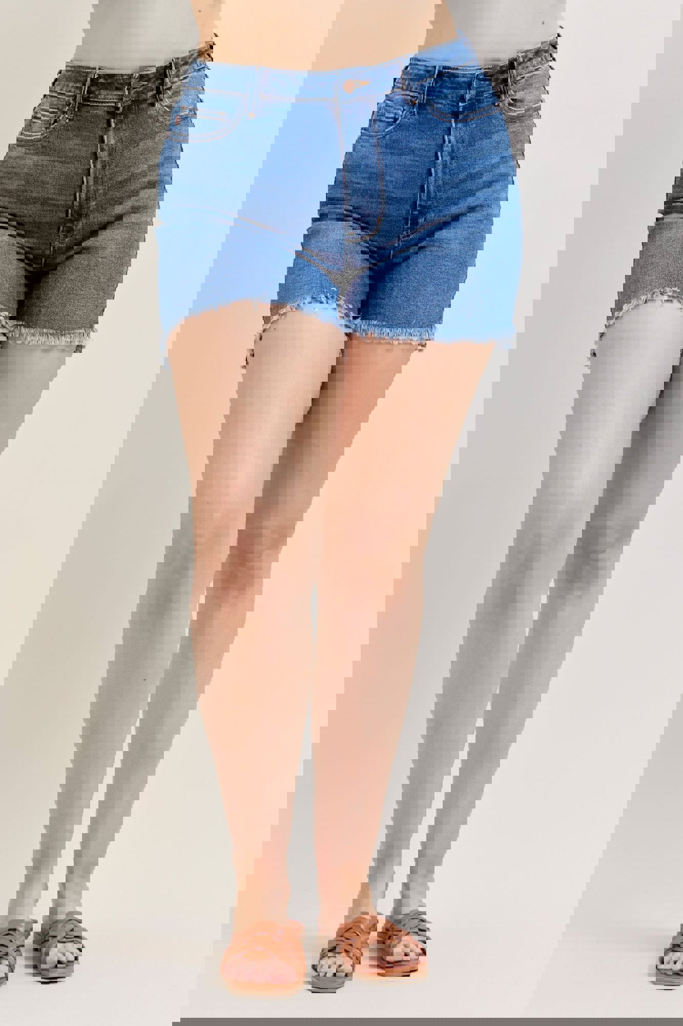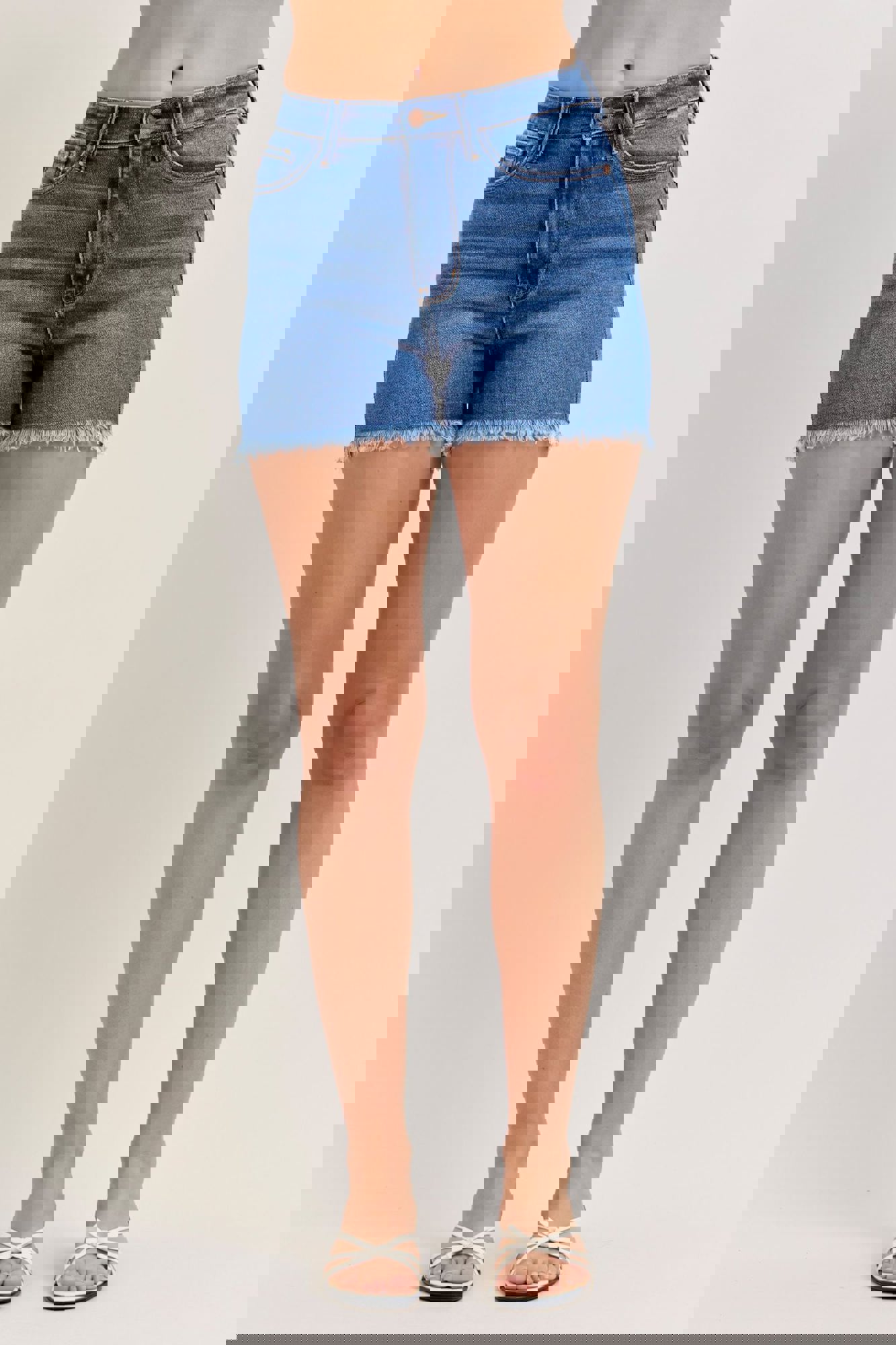 Judy Blue High Waist Slim Denim ShortStyle #JB152105 Classic, clean, and effortlessly flattering—these High Waist Slim Denim Shorts from Judy Blue are a must-have for warm-weather outfits. Designed in a gorgeous medium wash, they feature a frayed hem for a casual finish while remaining completely non-distressed for a p