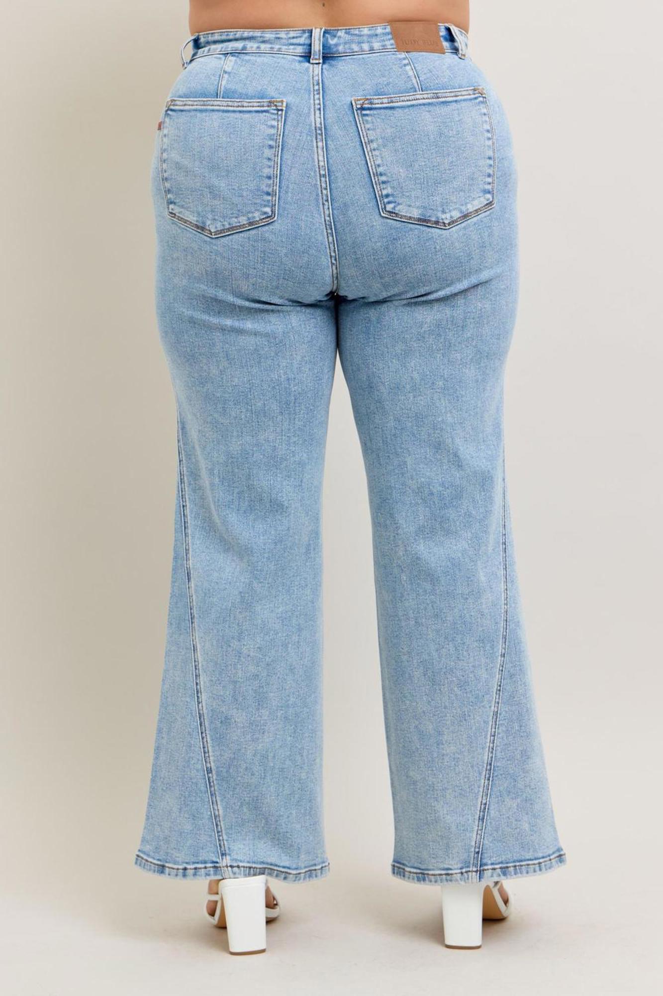 Judy Blue High Waist Stone Wash Retro Skewed Hem Wide Leg Denim Jeans 82654 - Plus