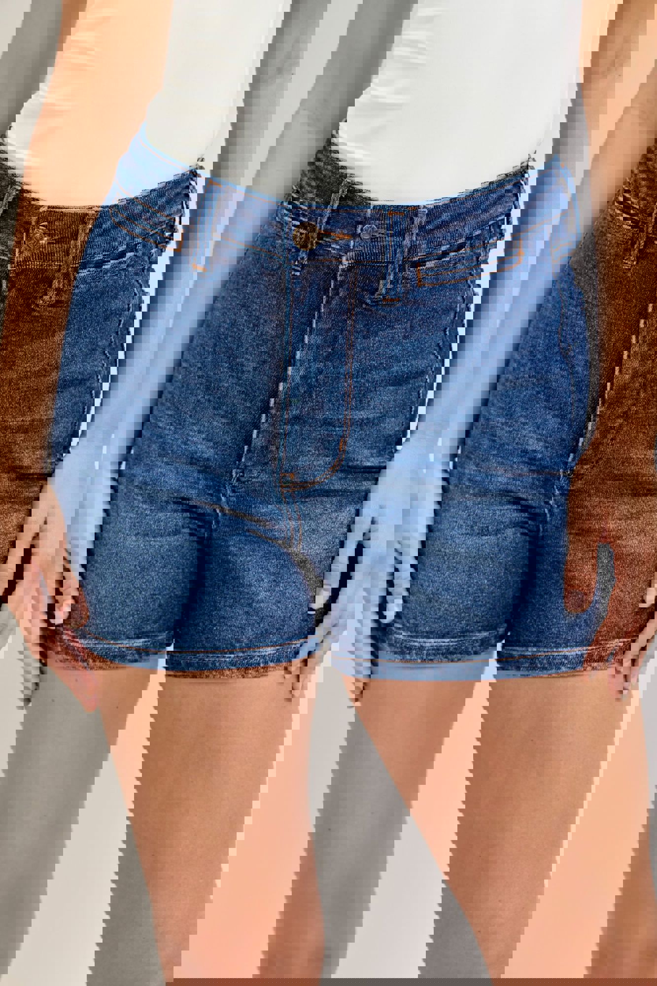 Judy Blue High Waist Tummy Control Slim Denim ShortStyle #JB150351 Classic, clean, and effortlessly flattering—these High Waist Slim Denim Shorts from Judy Blue are a must-have for warm-weather outfits. Designed in a gorgeous medium wash, they feature welt pockets for a casual finish while remaining completely non-dist