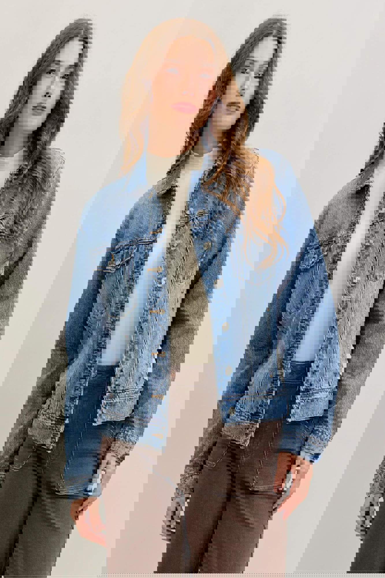 Judy Blue Rigid Magic Boyfriend Denim Jacket Style #JB7887 Meet your new layering essential! The Rigid Magic Boyfriend Jacket from Judy Blue blends the structured feel of classic rigid denim with a touch of stretch for comfort. Designed with a timeless boyfriend fit, this jacket is versatile enough to throw over tees, dresses, or sweaters year-round. Fit & Details: Boyfriend Fit: Relaxed and effortlessly cool Front Material: 100% Cotton for that structured, vintage-inspired look Back Material: 94% Cotton, 5% Polyester, 1% Spandex – adding stretch where you want it most Length: Regular 23.5” | Plus 25” Sizing: True to size Model Info: Model 1 (regular): 5’9, waist 25.5”, hips 33.5” – wearing size S Model 2 (plus): 5’10, waist 36”, hips 50” – wearing size 1XL Care Instructions: Turn inside out, wash cold, and air dry (or tumble low). Do not mix light and dark washes. This jacket has all the classic denim jacket vibes you love, updated with Judy Blue’s signature comfort and stretch. Perfect for completing any outfit, it’s the must-have layering piece of the season.