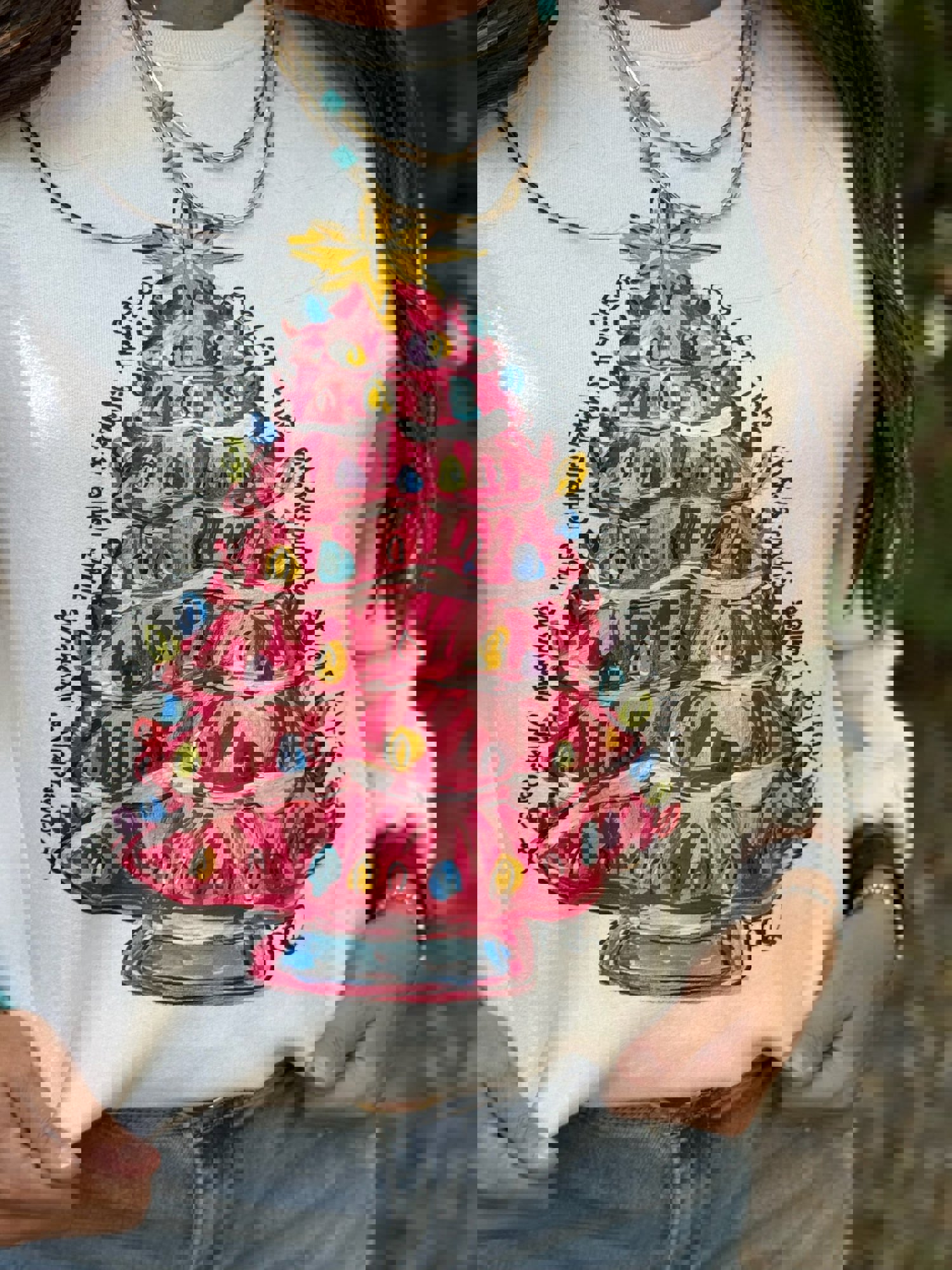 Texas True Threads Callie Ann Stelter Pink Christmas Tree Sweatshirt