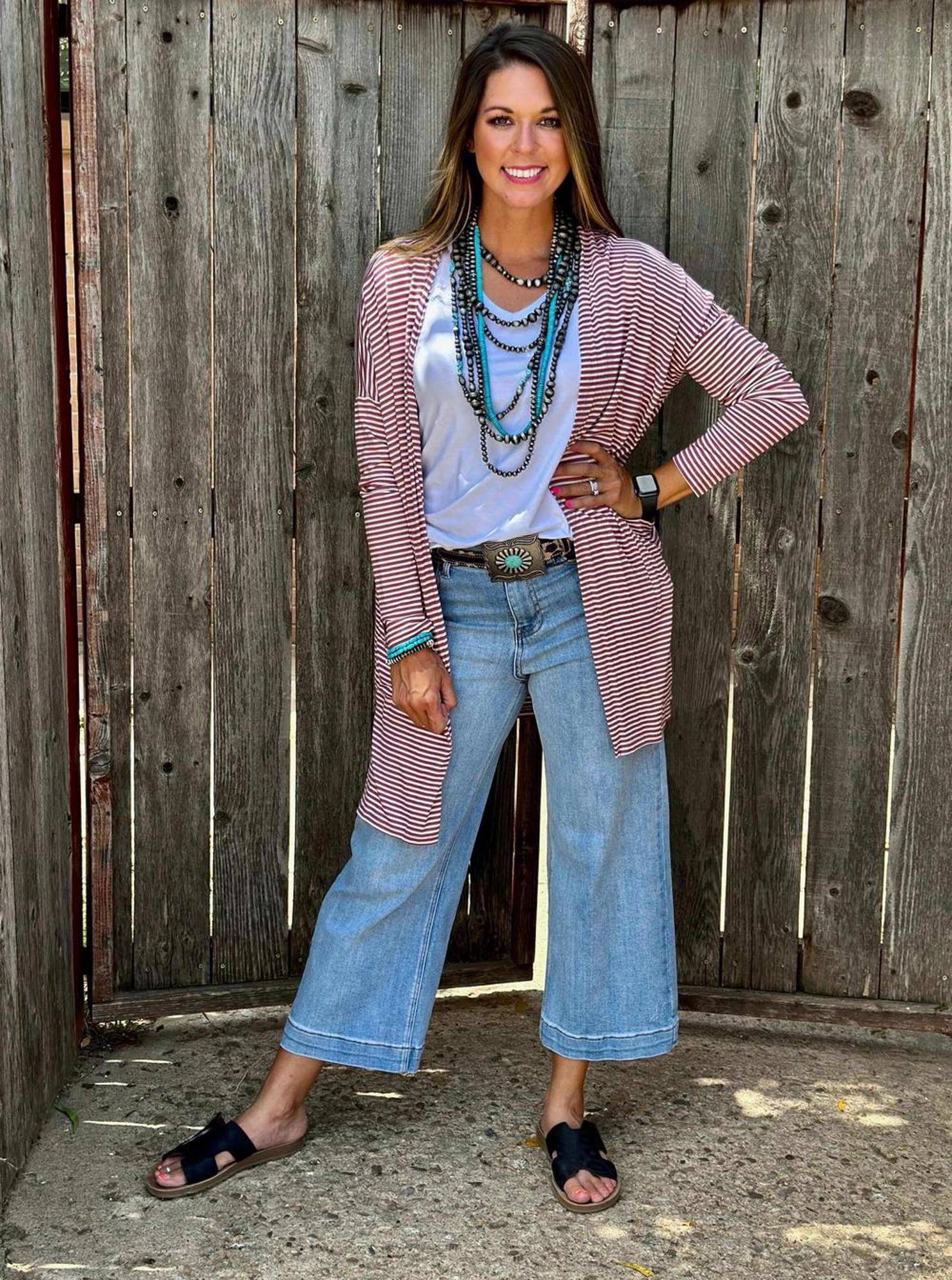 Say hello to your new layering favorite! This striped cardigan is a customer favorite for a reason—lightweight, versatile, and oh-so-comfy. The soft mauve hue adds a fresh spring vibe, making it the perfect piece to style through every season.