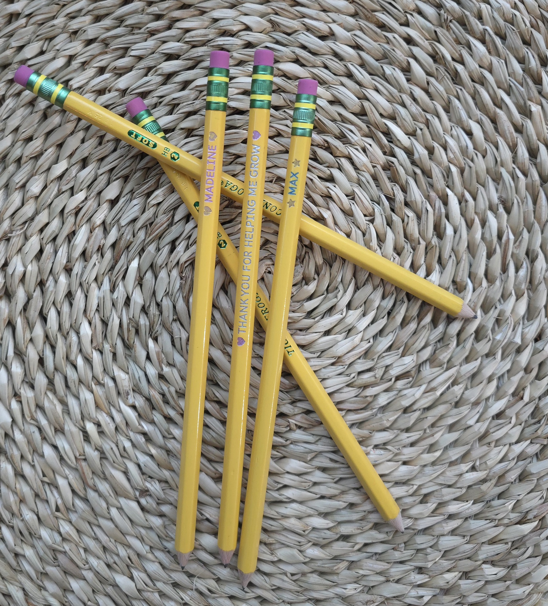 Our custom engraved #2 Ticonderoga pencils are a fun and practical way to make school, homework, or the office feel a little more personal! Perfect for kids, teachers, party favors, classrooms, and team events. Each pencil is engraved with your chosen name, word or phrase.
