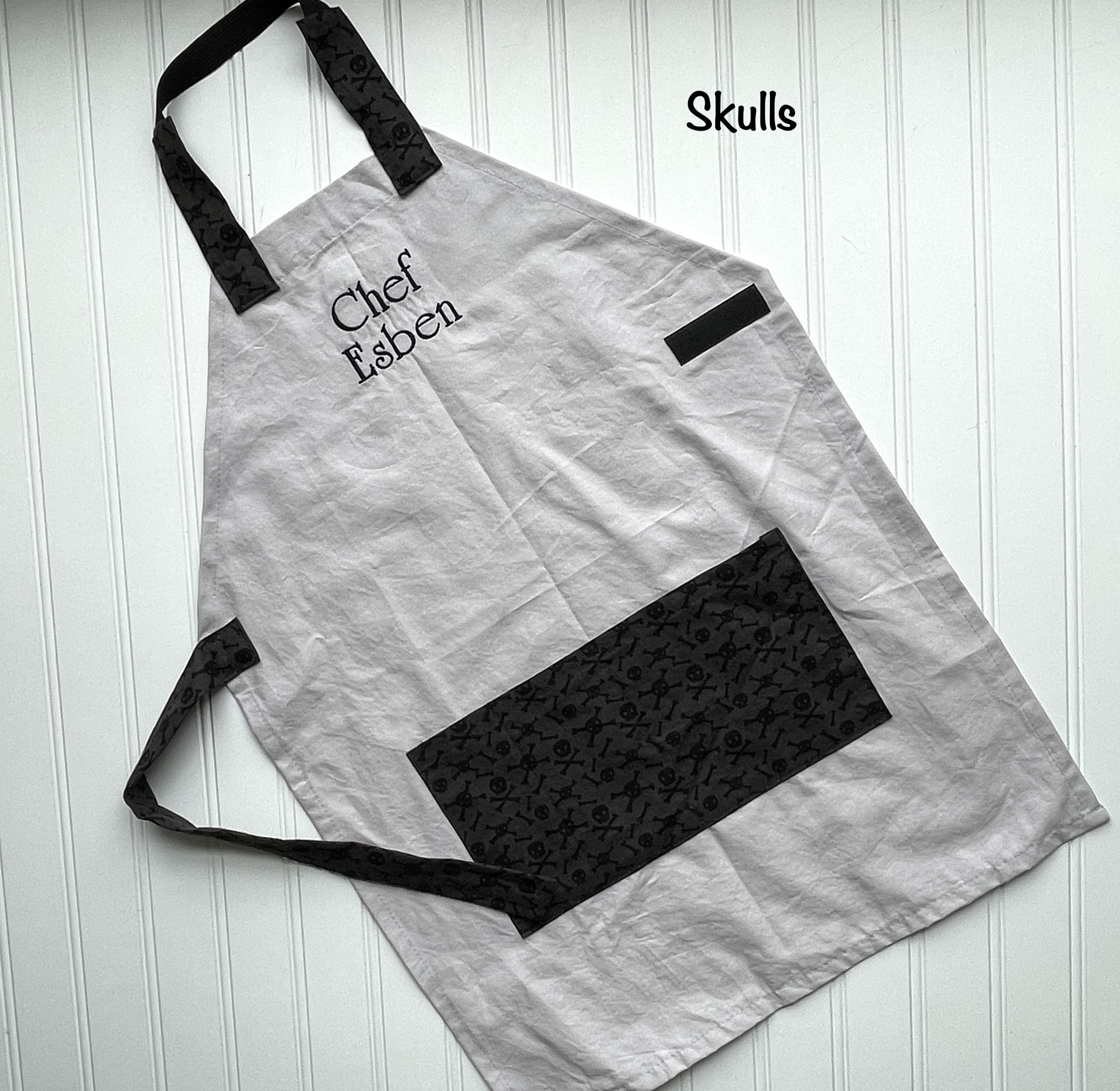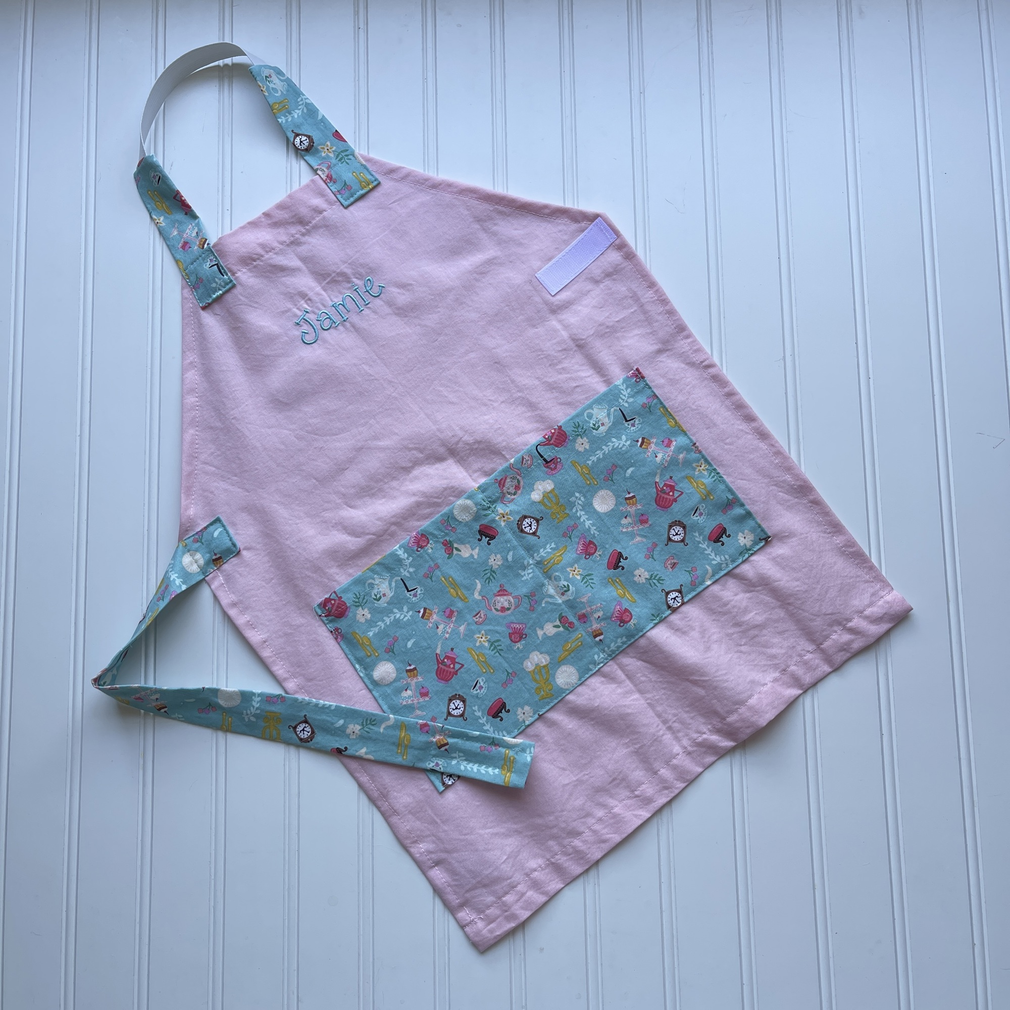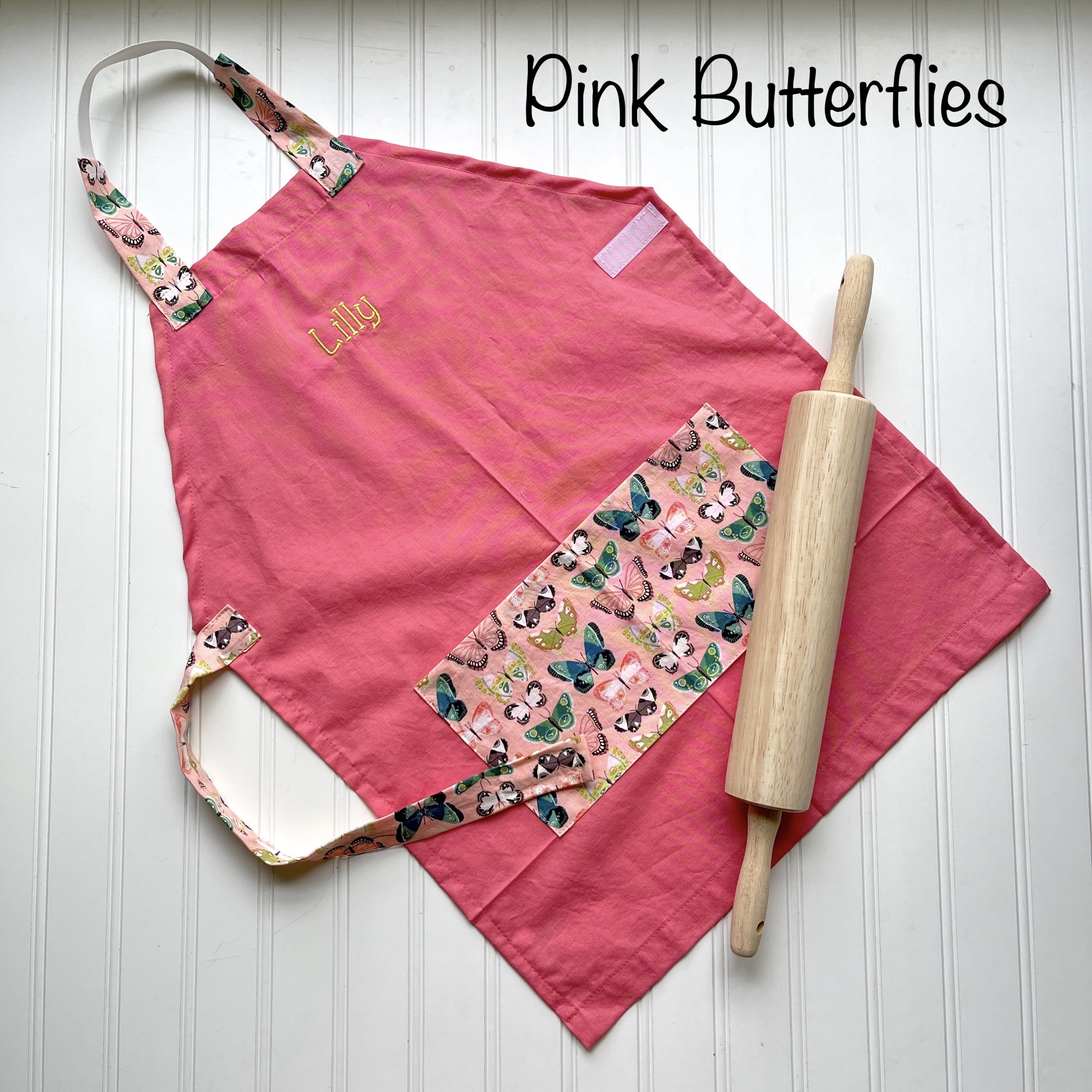 Price includes one handmade apron and child's name embroidered on the apron.