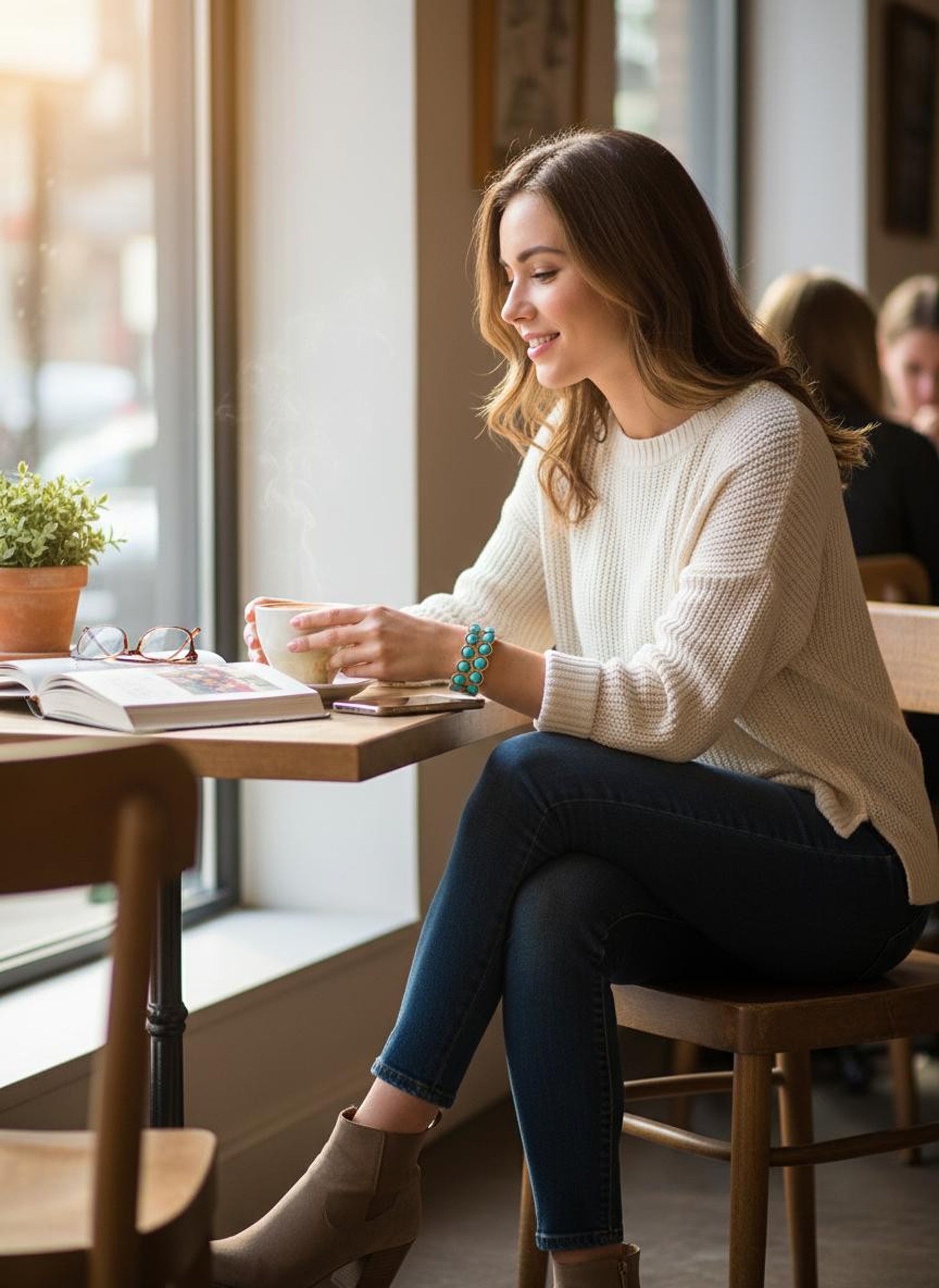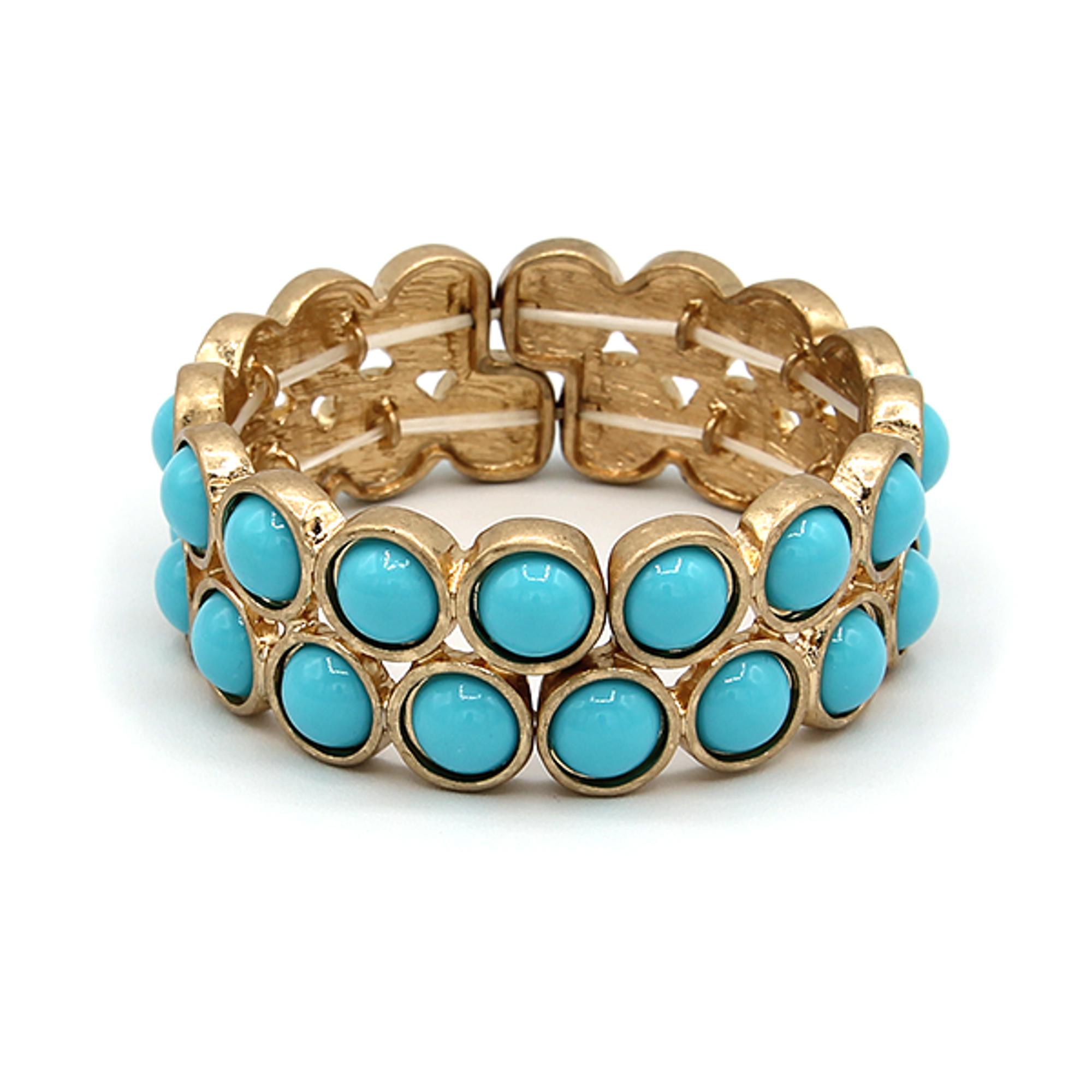 2 line round turquoise stone accent stretch gold tone bracelet.