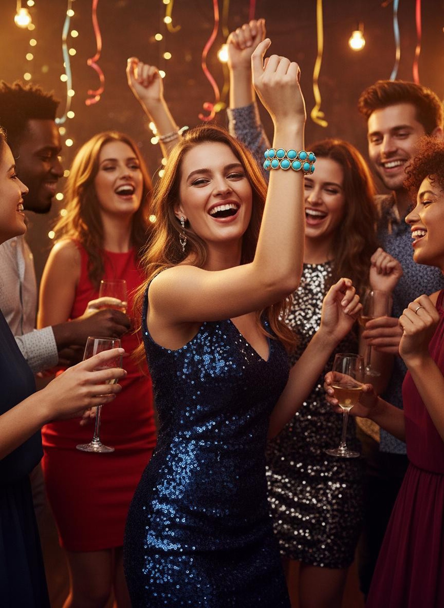 2 Line Turquoise Stone Stretch Gold Bracelet