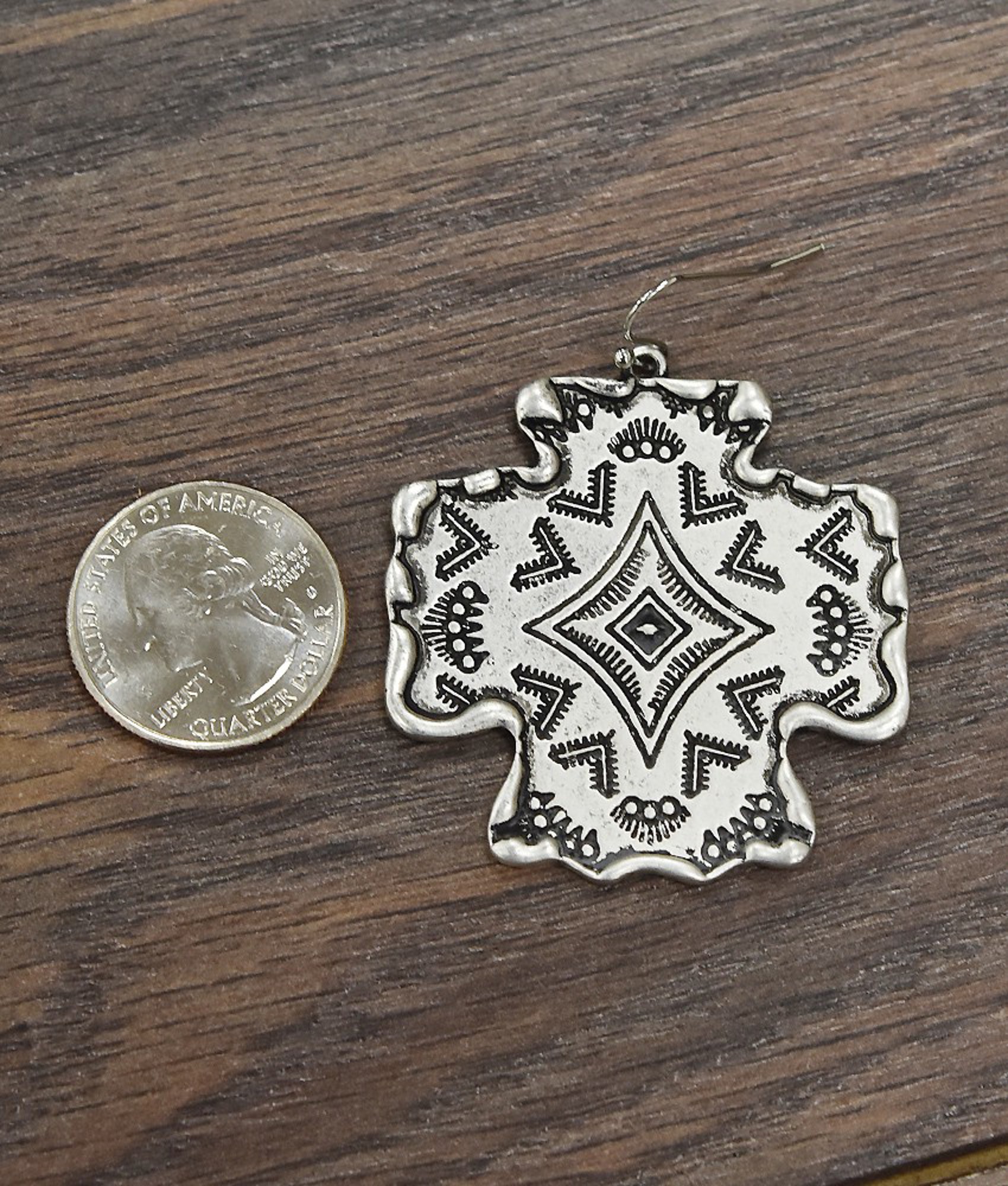 Aztec Cross Silver Hook Earrings