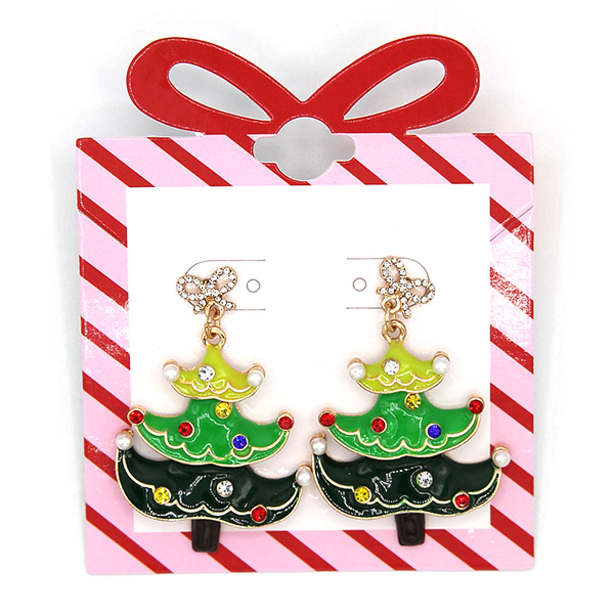 Bling Bow Christmas Tree Dangle Post Earrings