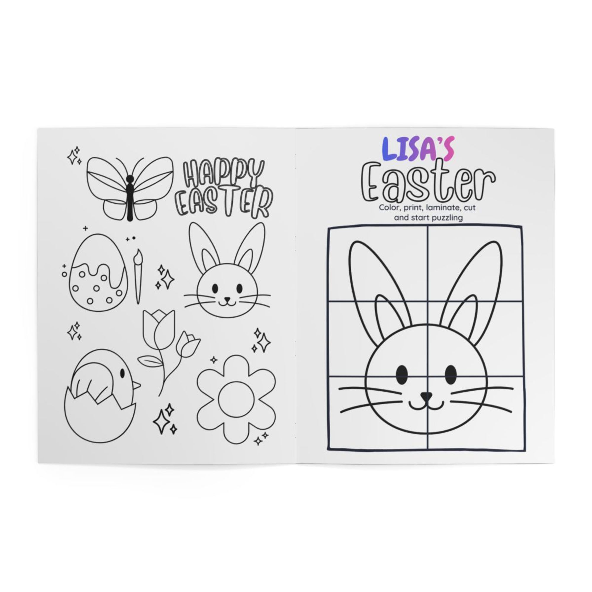 Personalized Easter Coloring Book — "Lisa's (YOUR NAME) Happy Easter" Kids Activity Book