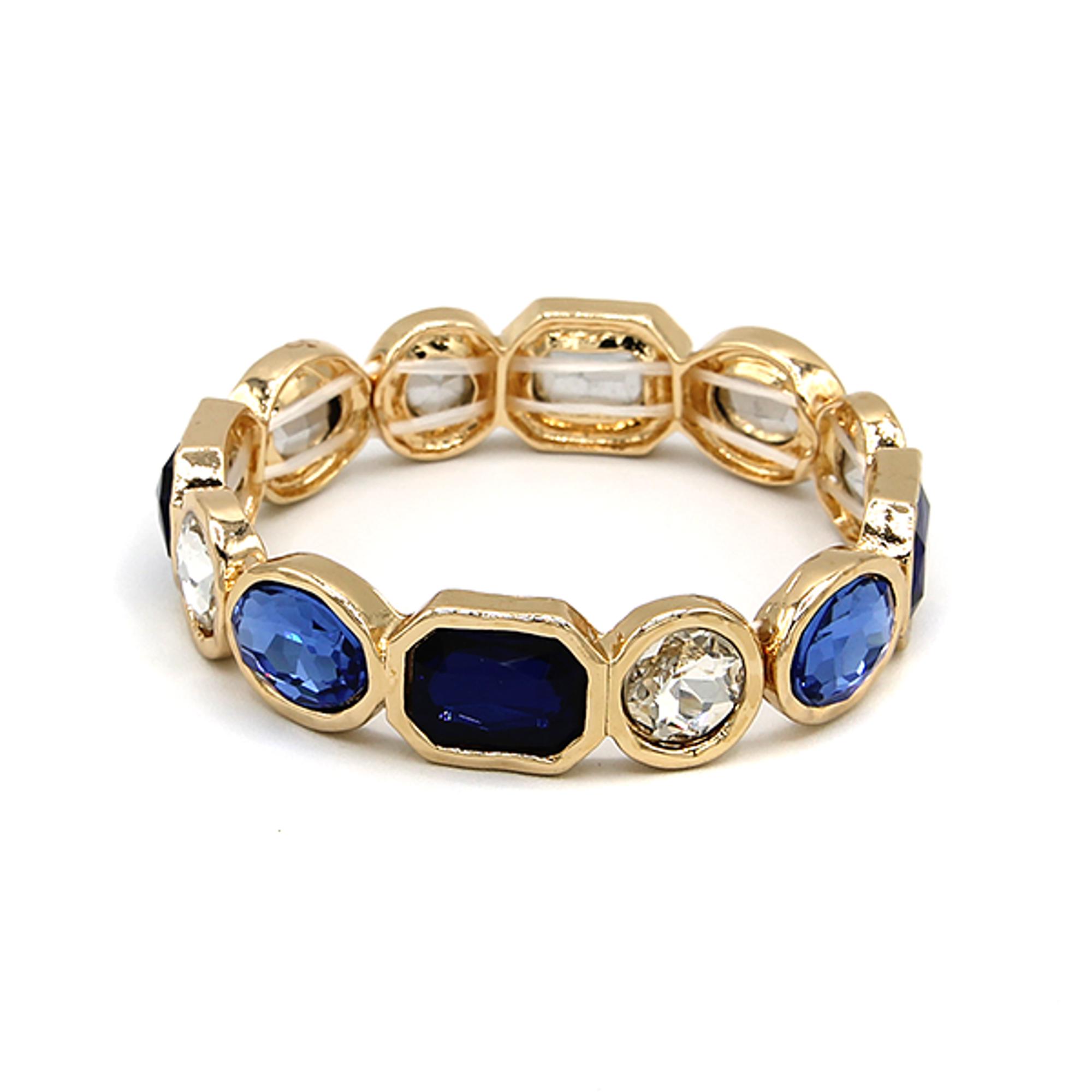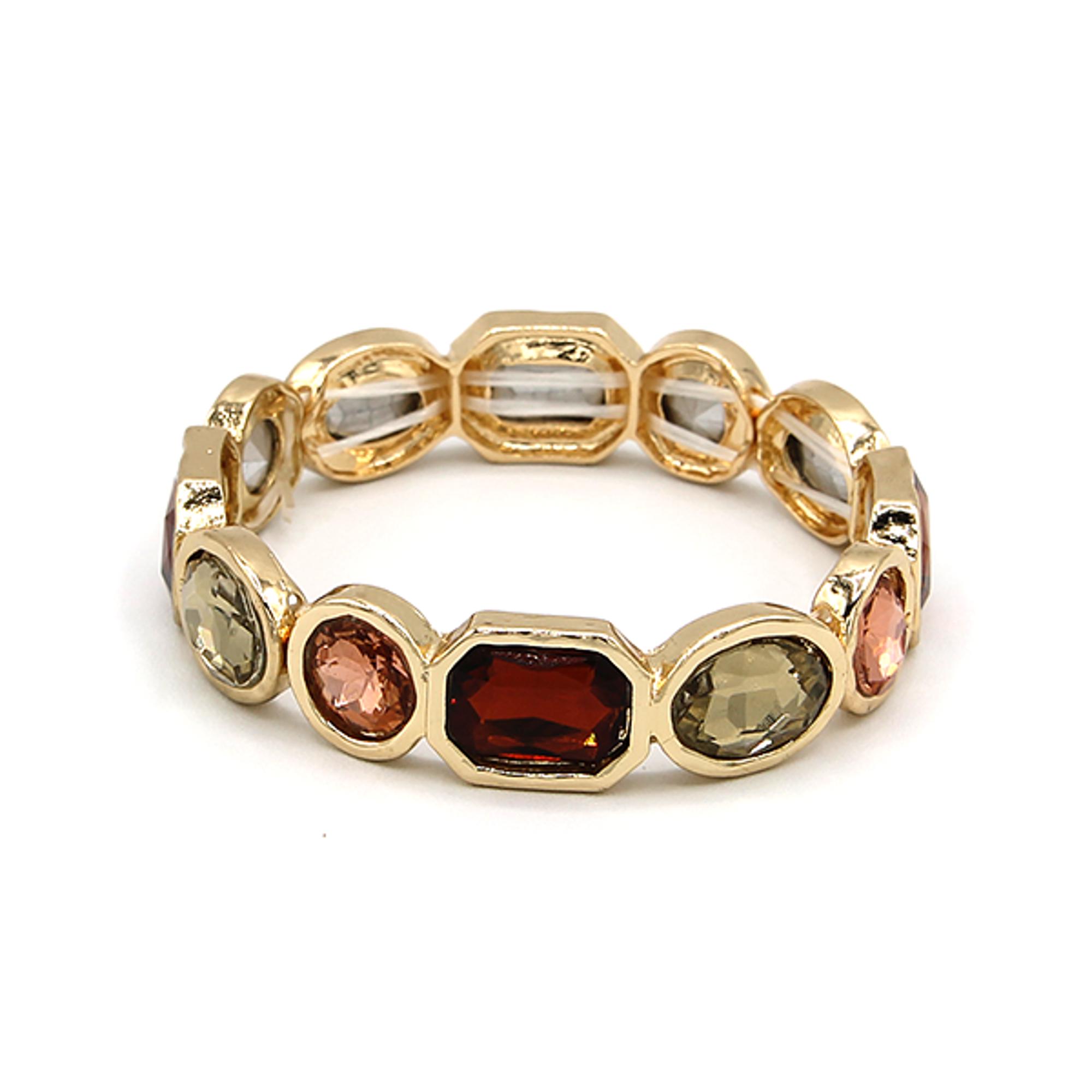 Rectangle Round Gems Stretch Gold Bracelets - 4 Choices